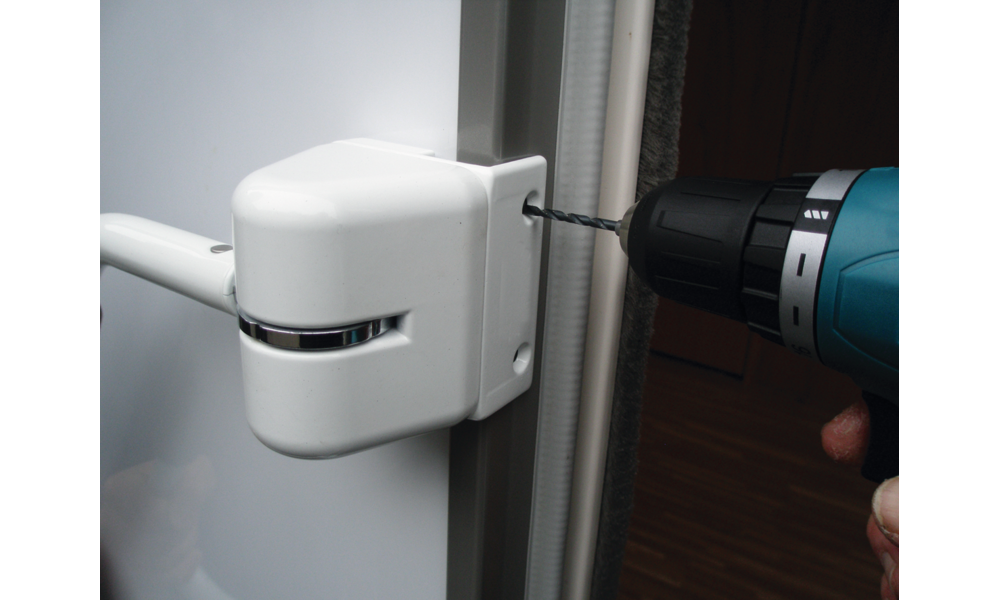 Der Montagehalter wird seitlich im Türrahmen verschraubt.