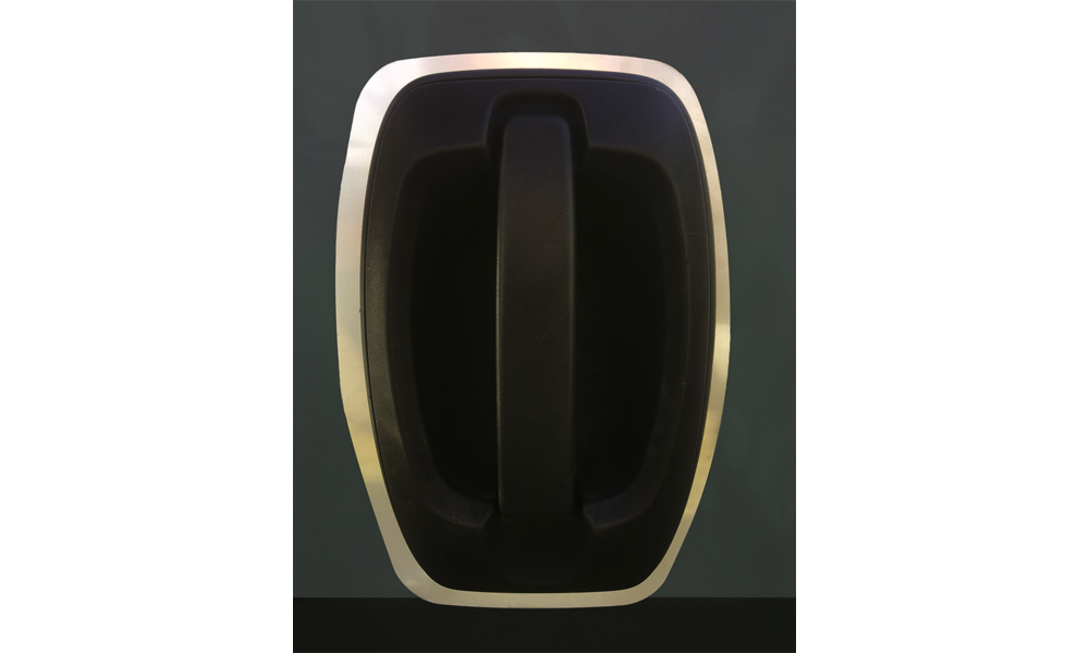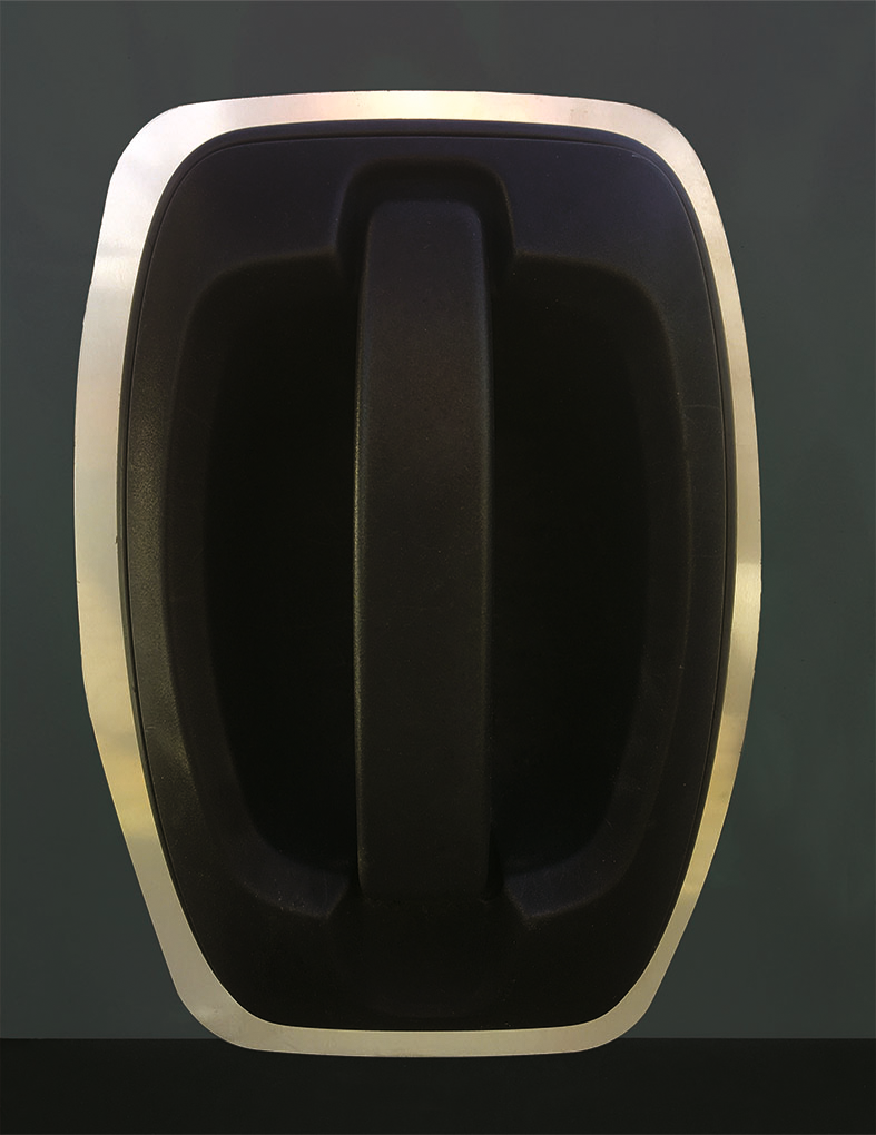 Die Stechschutzplatte ist aus Edelstahl gefertigt und passt sich den Konturen der Griffschale an.