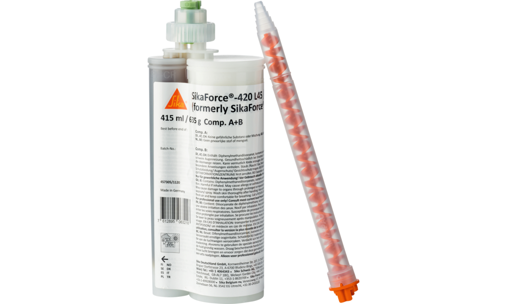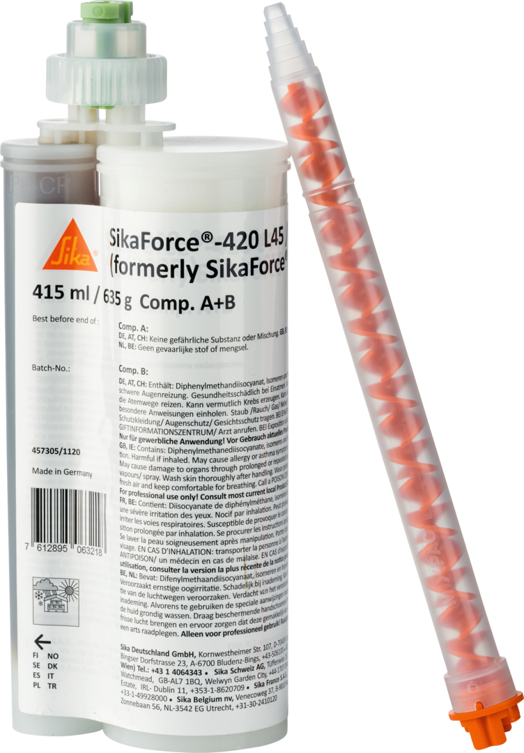Ist ein standfester, toleranzausgleichender und lösemittelfreier 2K-Polyurethanklebstoff für das Verkleben von Profilen und Sandwichelementen aus GFK, Holz, Metall, Keramik und vorbehandelten Kunststoffen.