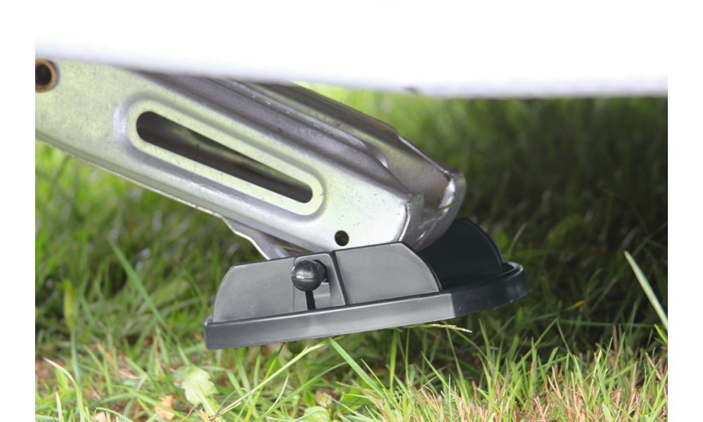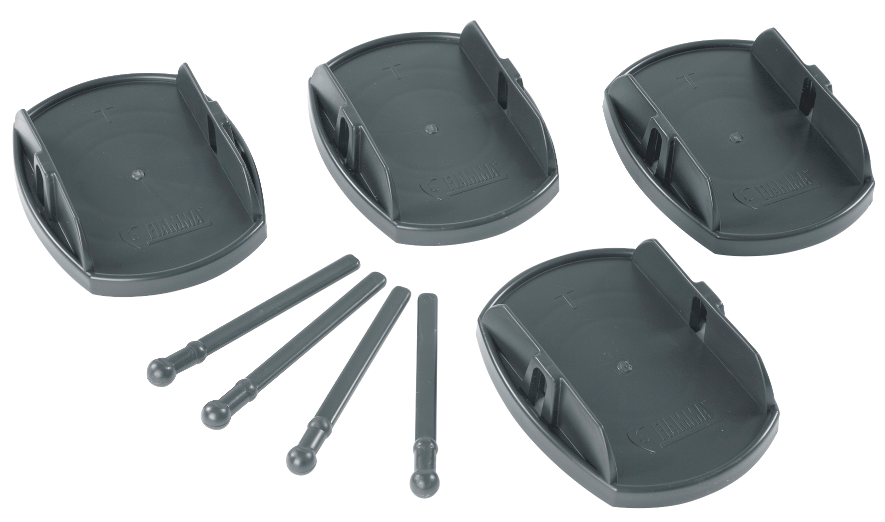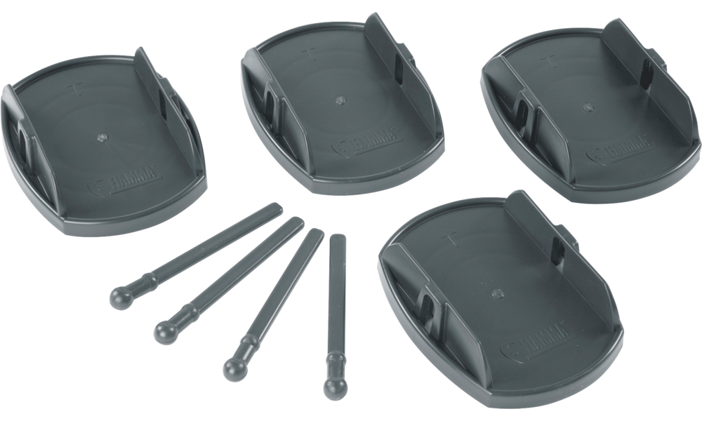 Kit aus vier Unterlagen zum Schutz gegen Einsinken, mit Stoppern zur Befestigung an den Stützböcken.