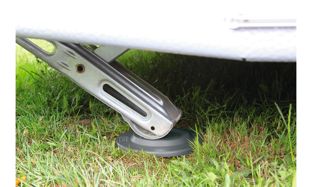 Praktische Platten für die Kurbelstützen der Wohnwagen.