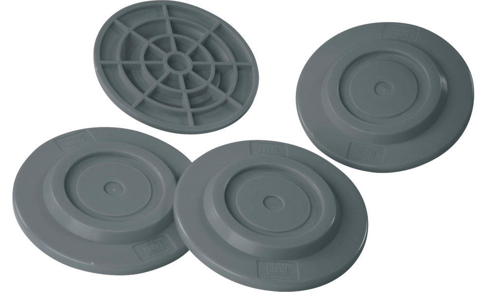 Kit aus vier Unterlagen für den mobilen Schutz gegen das Einsinken der Stützen am Wohnwagen.