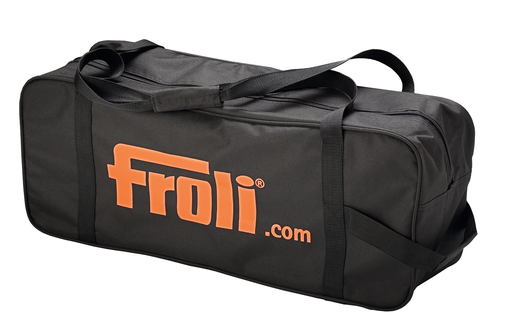 Freizeit- und Sporttasche in der Farbe schwarz mit aufgedrucktem Froli Logo.