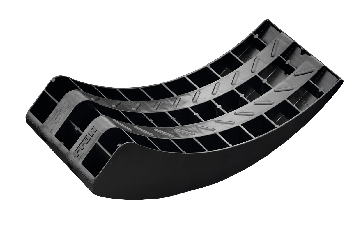 Innovativer Rundkeil: Stufenloser Höhenausgleich und reifenschonendes Parken.