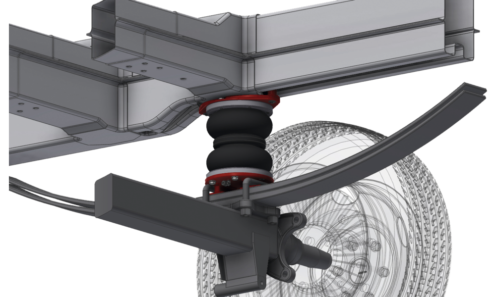 Zusatzluftfeder für die Hinterachse. Neben den Originalfedern werden kräftige Zusatzluftfedern montiert. Es gelten die gleichen Eigenschaften wie bei den Zusatzschraubenfedern beschrieben.