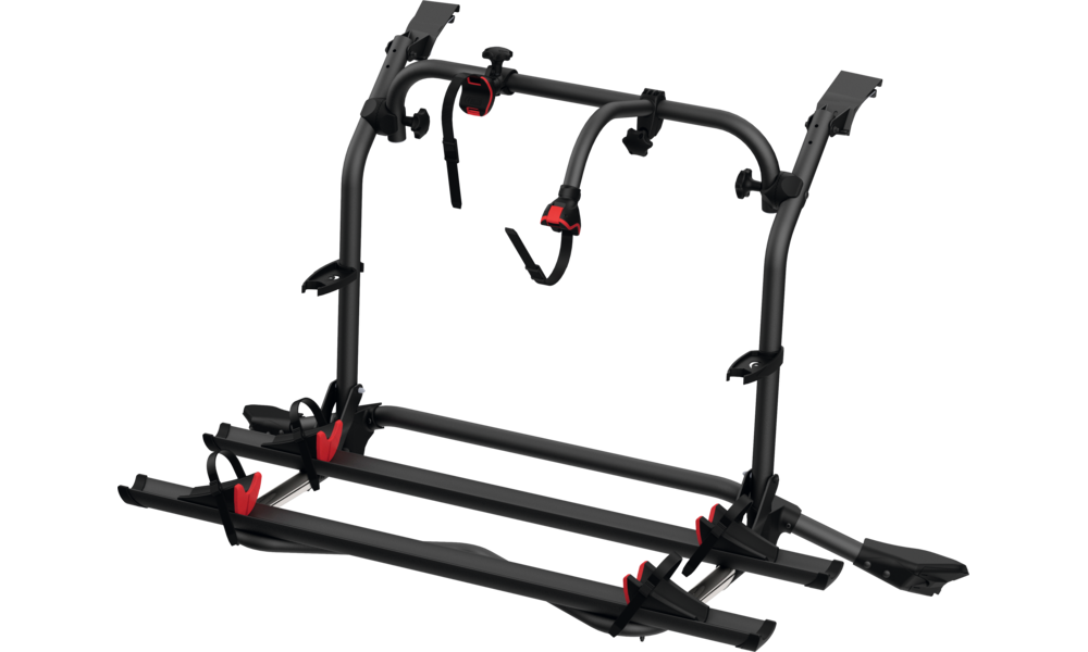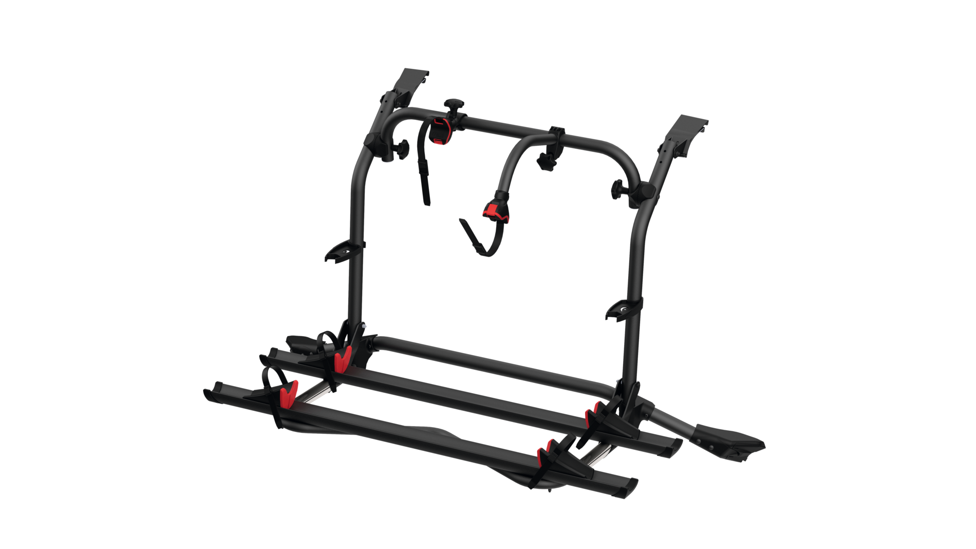 Restyling des CARRY-BIKE® T5 Pro, optisch verbessert und technisch verstärkt. Das neue Modell ermöglicht dank Rail Premium-Schiene den Transport von max. 4 Standard-Fahrrädern oder 2 E-Bikes.