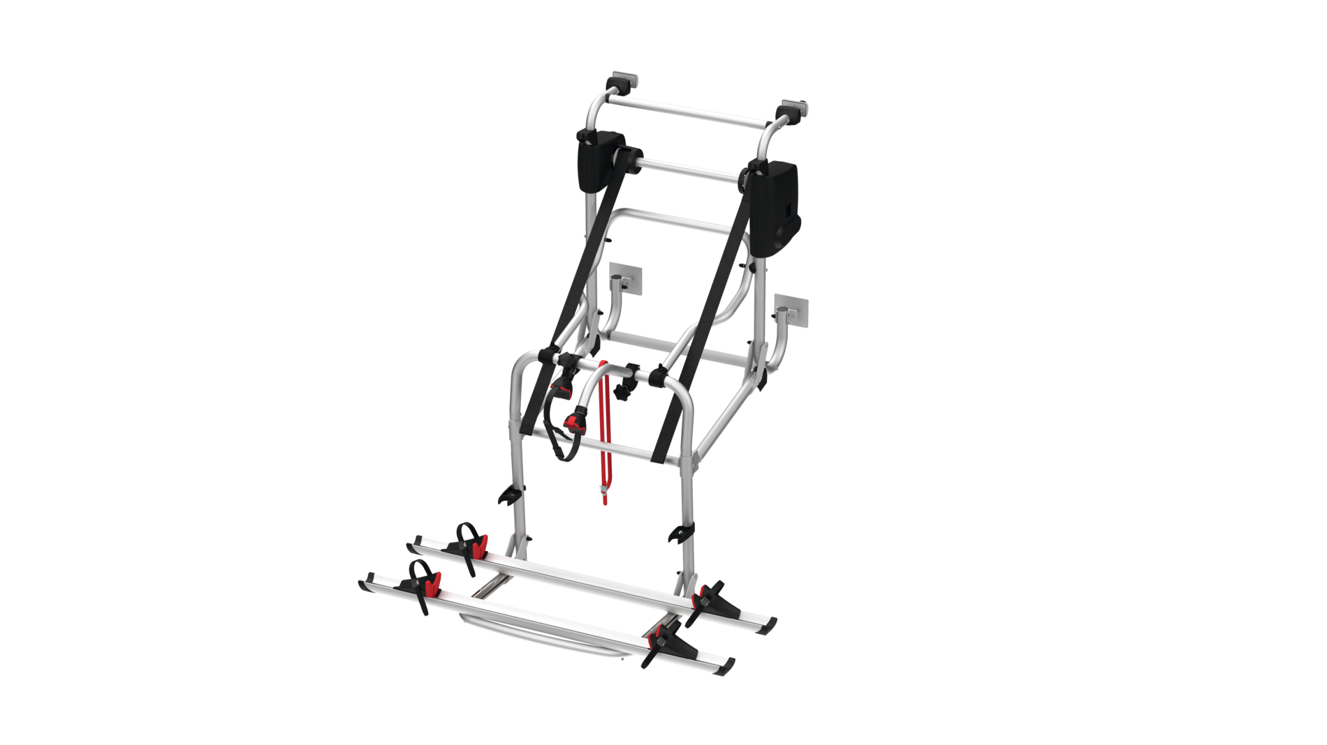CARRY-BIKE® Motor Lift 77. Motorisierte Version mit 12 V-Stromversorgung. Zusätzlich mit Endabschaltung zur Feinabstimmung der Funktion des Carry-Bike beim Schließen. Für den Transport von bis zu 4 Standard- oder 2 E-Bikes.