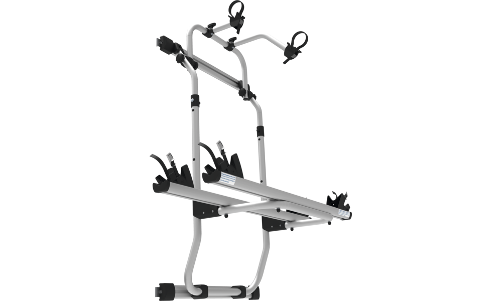 Der Grundträger kann als Hochlader oder mit der optional erhältlichen Beleuchtungsleiste als Tieflader eingesetzt werden. Ein nachträglicher Umbau von Hoch- zu Tieflader ist nach dem Verkleben der Montageschienen nicht mehr möglich. Grundrahmen aus Alu-Rohr, 2 Aluminium-Fahrradschienen mit je 2 Radschalen, 2 Zurriemen, 2 Befestigungskrallen und 2 Spannschienen zur Montage am Fahrzeug. Max. Beladung 2 Fahrräder. Abmessungen