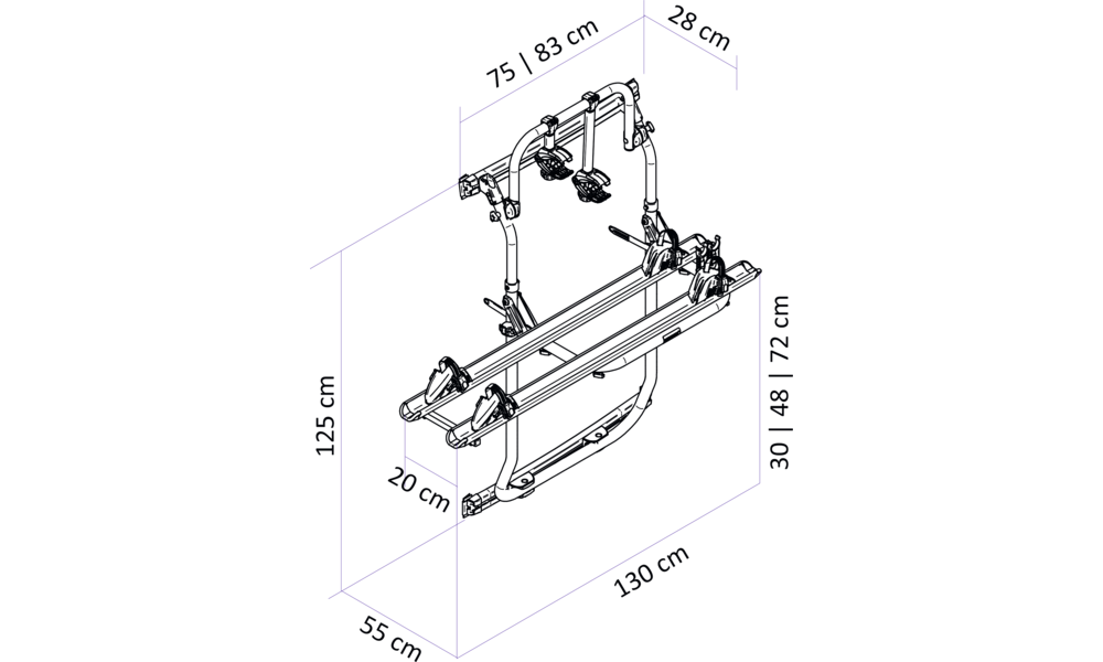 Einfach handhabbarer Fahrradträger. Die Türen können mit geladenen Fahrrädern geöffnet werden.