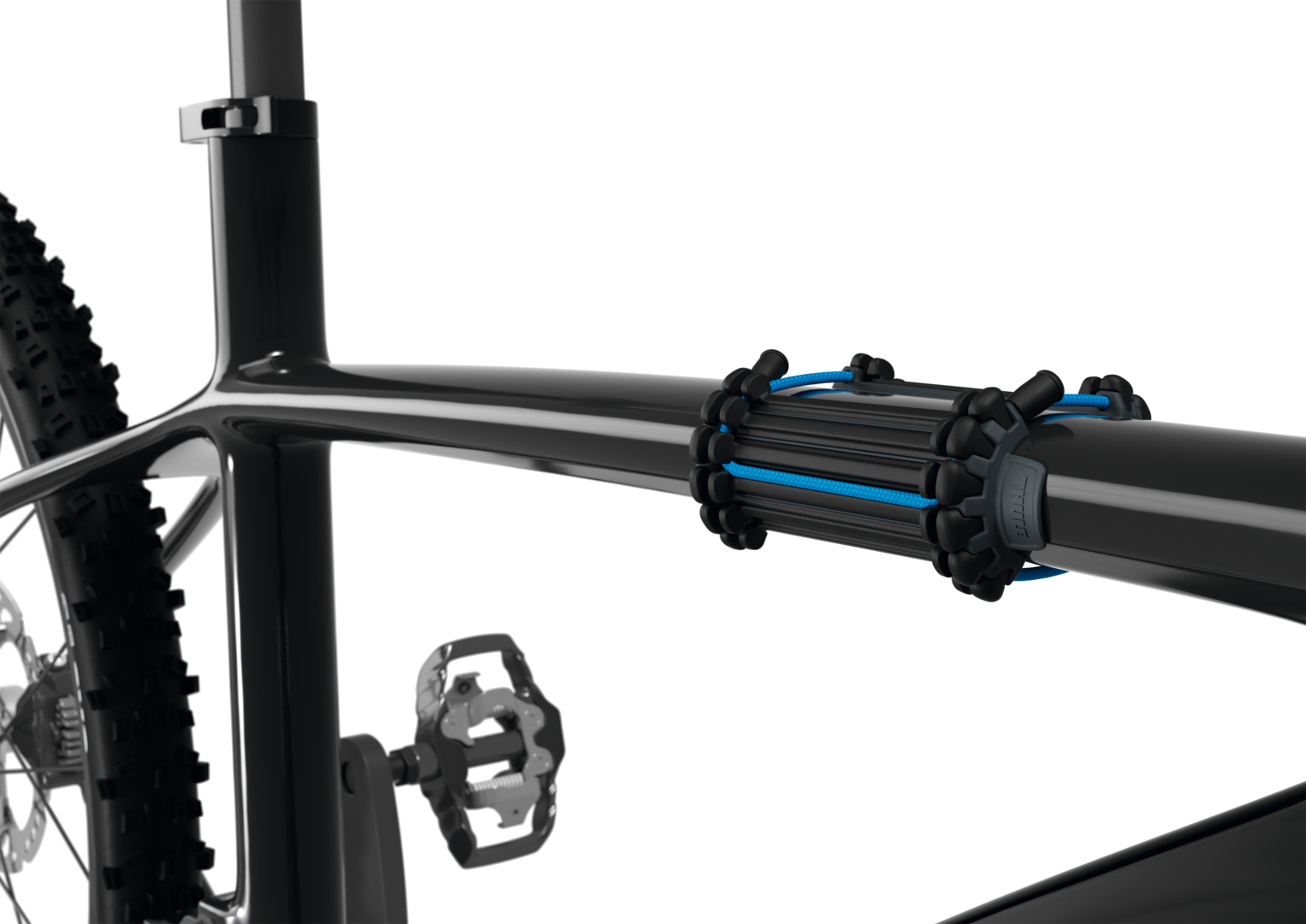 Für alle Rahmengeometrien, leicht einstellbar ohne lose Teile, weiche TPE-Gummiauflage.