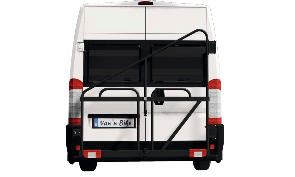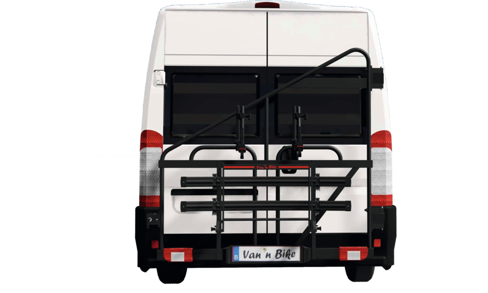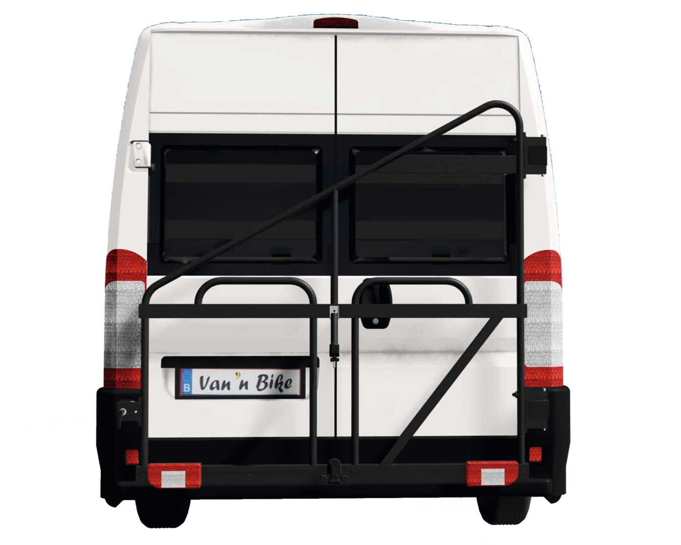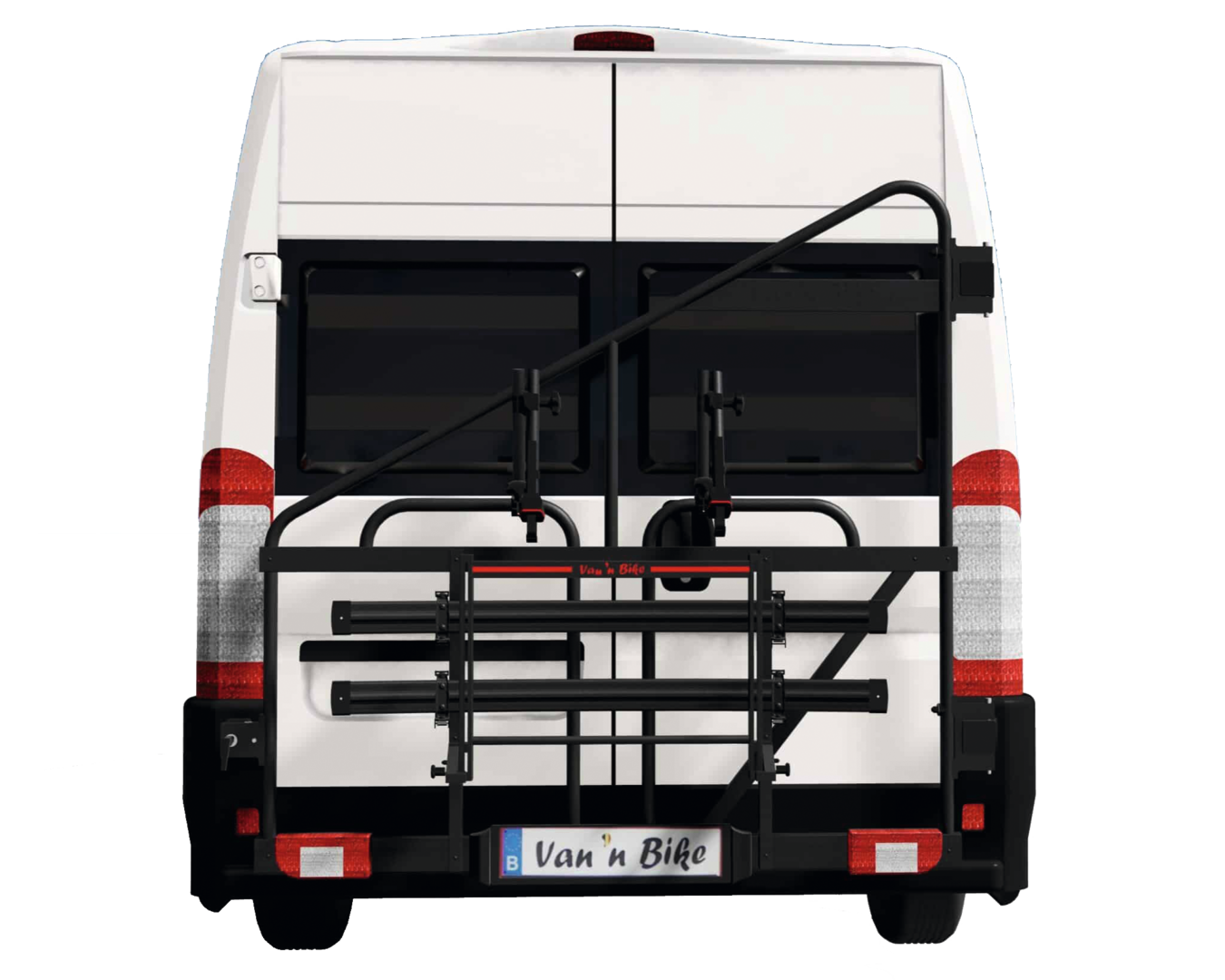 Fahrradträgersystem für Fiat Ducato, Citroën Jumper, Peugeot Boxer (ab Bj. 2006) und Opel Movano (ab Bj. 2021), das für den Transport aller Arten von Fahrrädern geeignet ist.