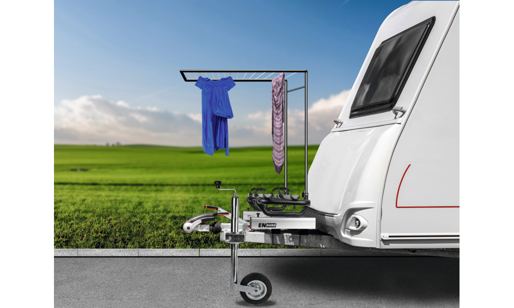 Der Wäscheständer wird einfach gegen den U-Bügel des Fahrradträgers ausgetauscht.