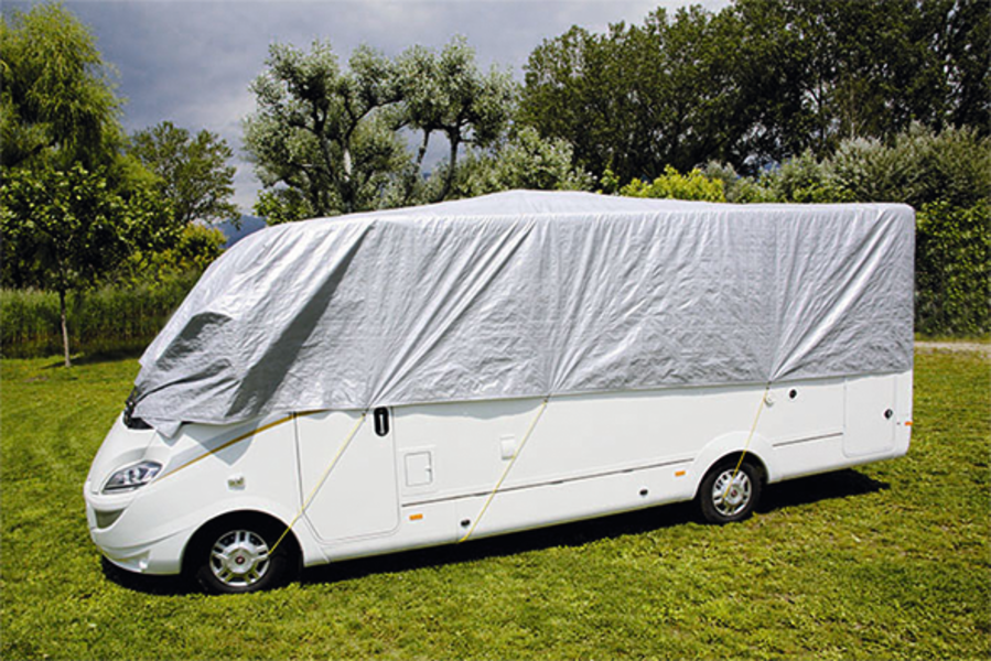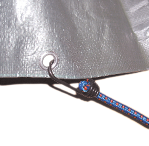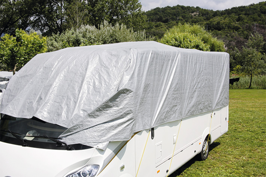 Mit verstärkten Ecken und robusten Ösen. Einfach über das Fahrzeug legen und abspannen (Spannseile nicht im Lieferumfang).