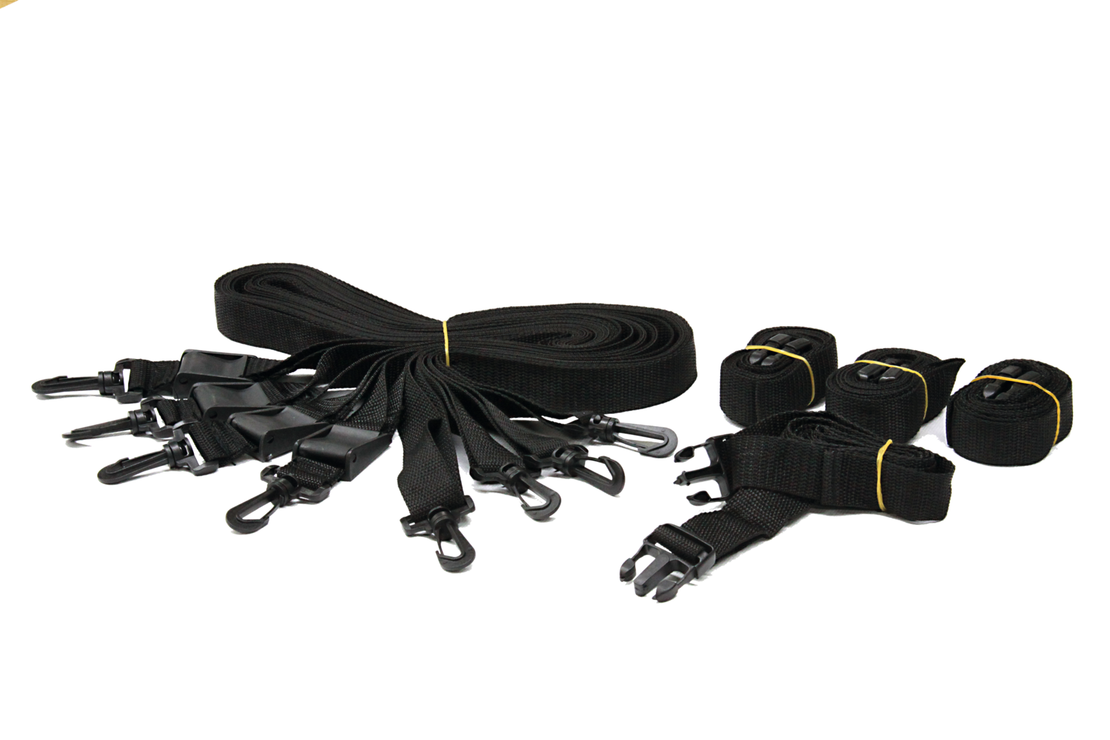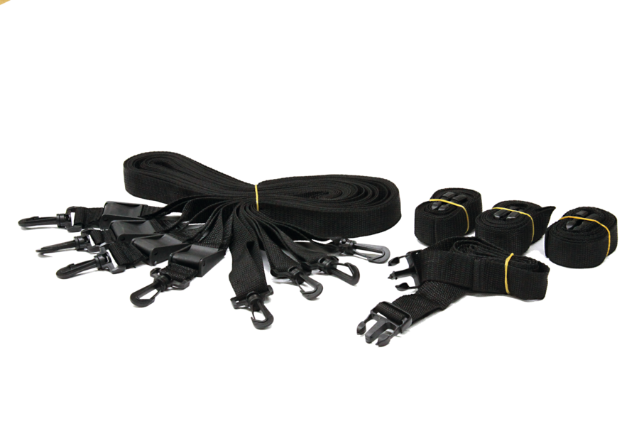Bestehend aus 4 Gurten (240 cm) für Front- und Heckbereich sowie 4 Quergurten (380 cm) für die Fahrzeugunterseite.
