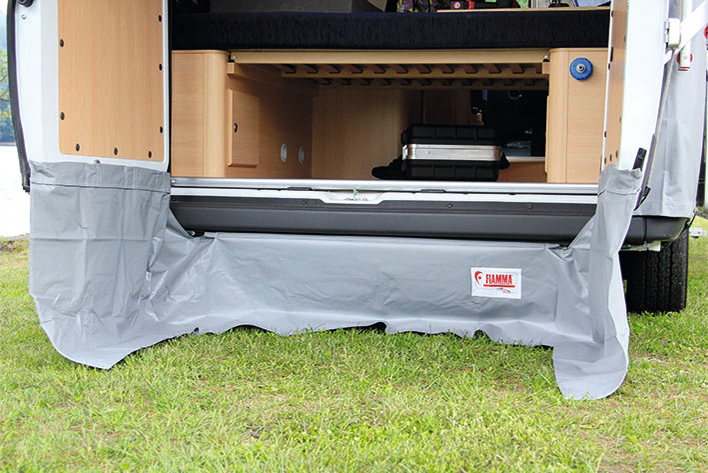 Rear Skirting Fiat Ducato. Windblende (90 % Poly-vinylchlorid + 10 % Polyester) für die Hecktüren.