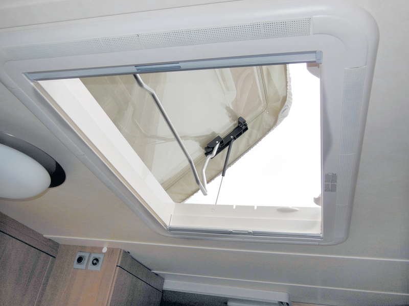 Bei aerodynamisch geformter Glaskuppel ist die Hülle 3-dimensional ausgearbeitet. Material: anschmiegsames Softkunstleder (75 % Polyvinylchlorid, 25 % Polyester), UV-stabilisiert. Farbe Seidengrau.