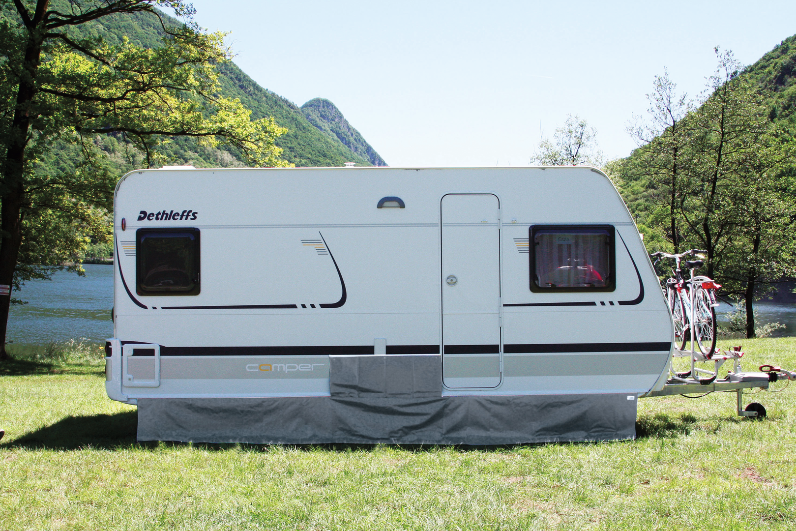 Skirting. Windblende (90 % Polyvinylchlorid + 10 % Polyester), schützt vor Zugluft unter dem Fahrzeug. In vier Ausführungen verfügbar.