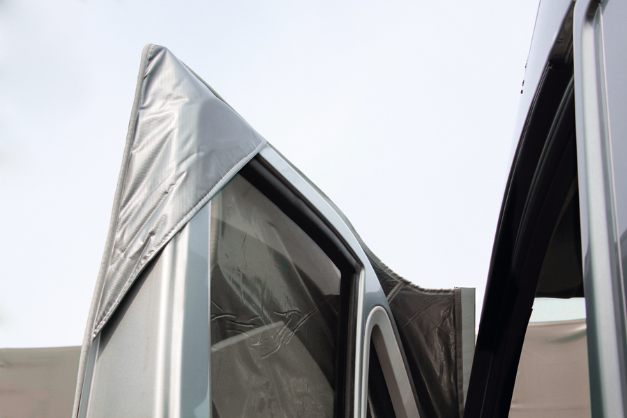 Auch für langes Stehen bei Nichtbenutzung gut geeignet. 2-teilige Ausführung: Der obere Bereich deckt die Front und Seitenfenster der Fahrerkabine ab. Zudem ist es möglich, die Windschutzscheibe frei zu machen, ohne dabei das Thermoglas abnehmen zu müssen.