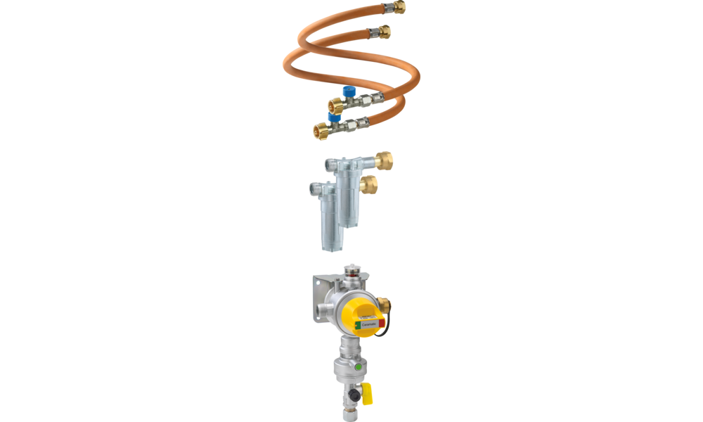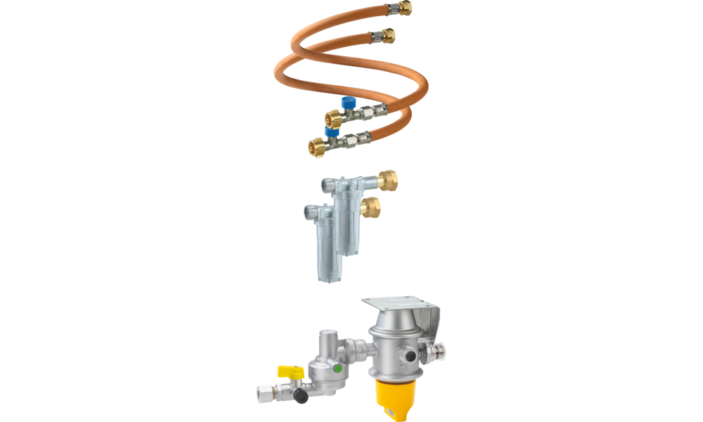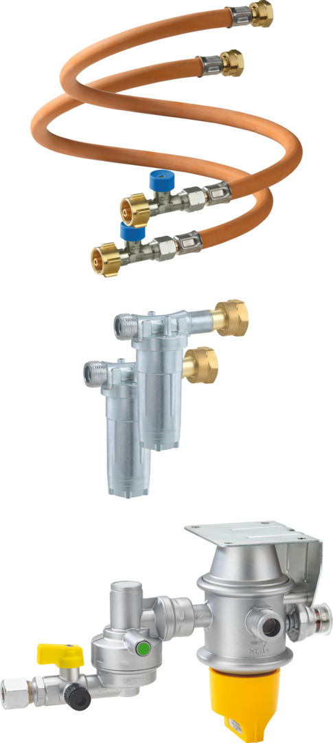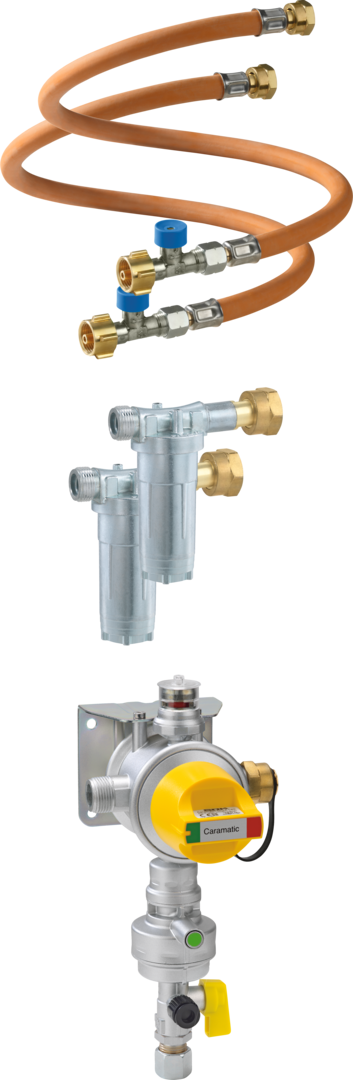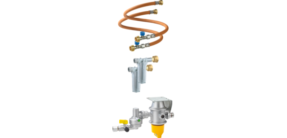 Sicherheits-Gasdruck-Regelanlage mit automatischem Umschaltventil zum Betrieb von Zweiflaschenanlagen in Caravans und Motorcaravans während der Fahrt.