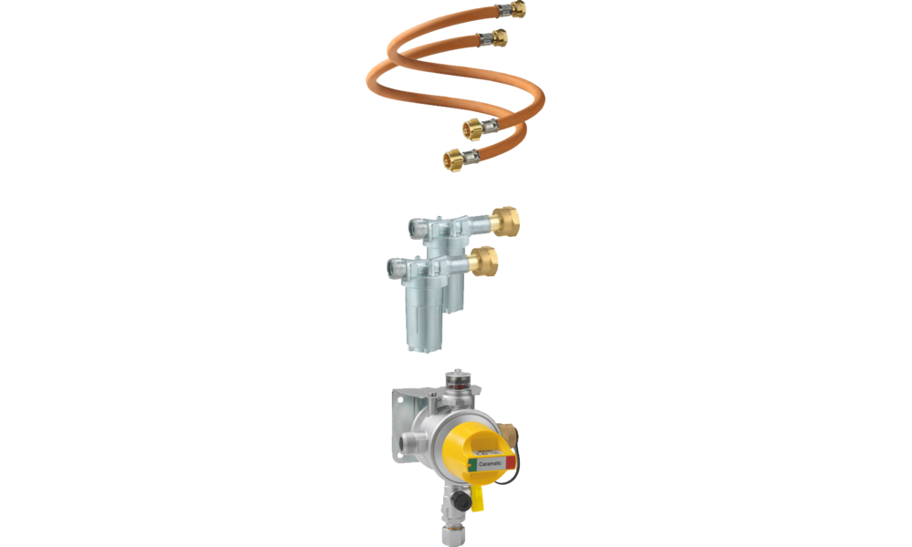 Automatisches Umschaltventil mit integriertem Niederdruckregler für die Zweiflaschenanlage.