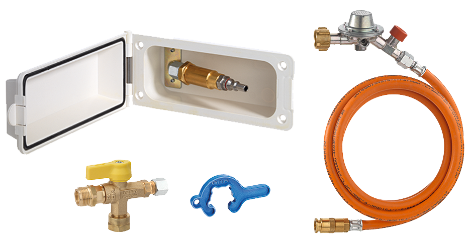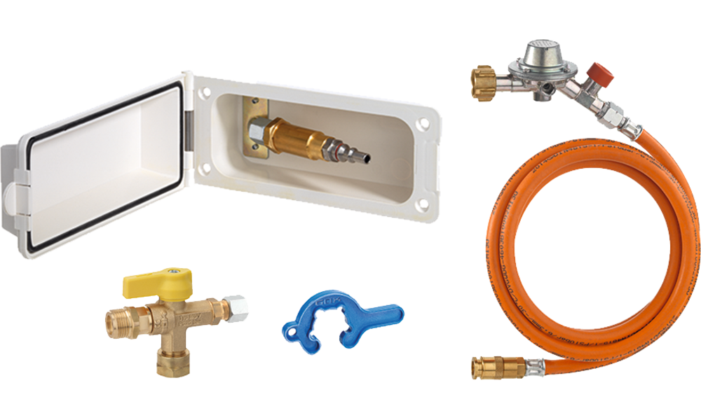 Zum Anschluss einer externen Gasversorgung (Gasflasche) für Caravans und Reisemobile mit Einflaschenanlage.