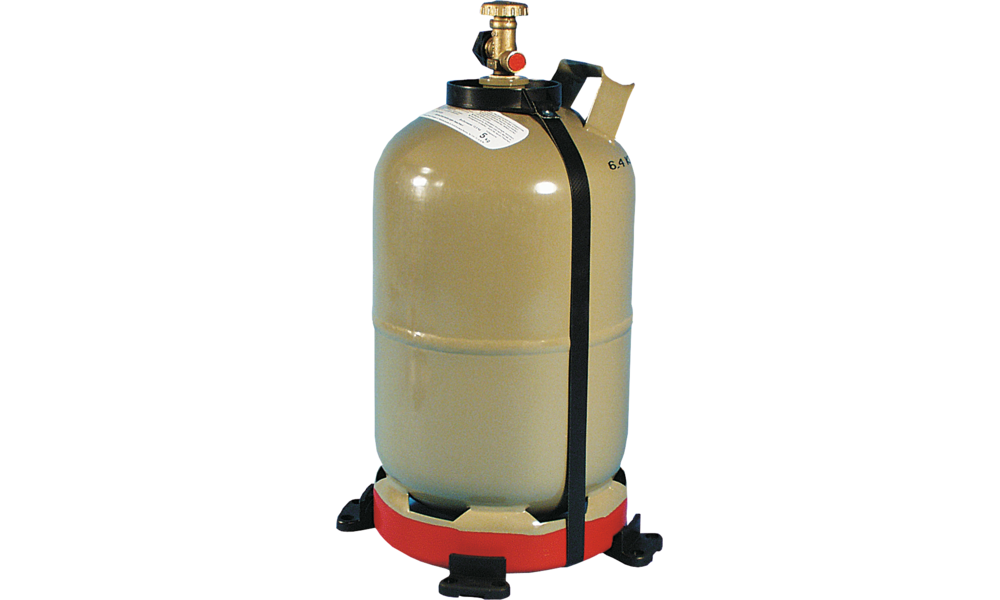 In den vier Kunststoffhalterungen steht die Gasflasche bombenfest.