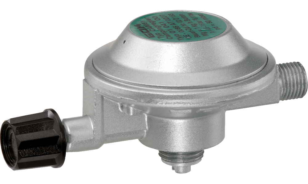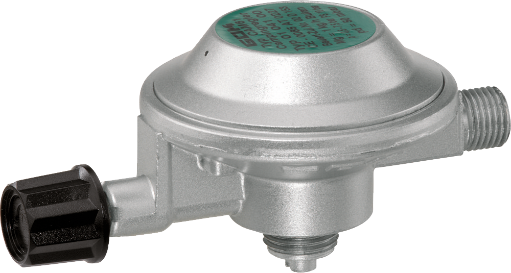 Eingangsanschluss für Campingaz®-Flaschen (M16 x 1,5) ohne integrierter Schlauchbrucheinrichtung. Typ: EN61 PS 10 bar, 50 mbar, GAZ x G ¼ LH-KN, 1 kg/h.