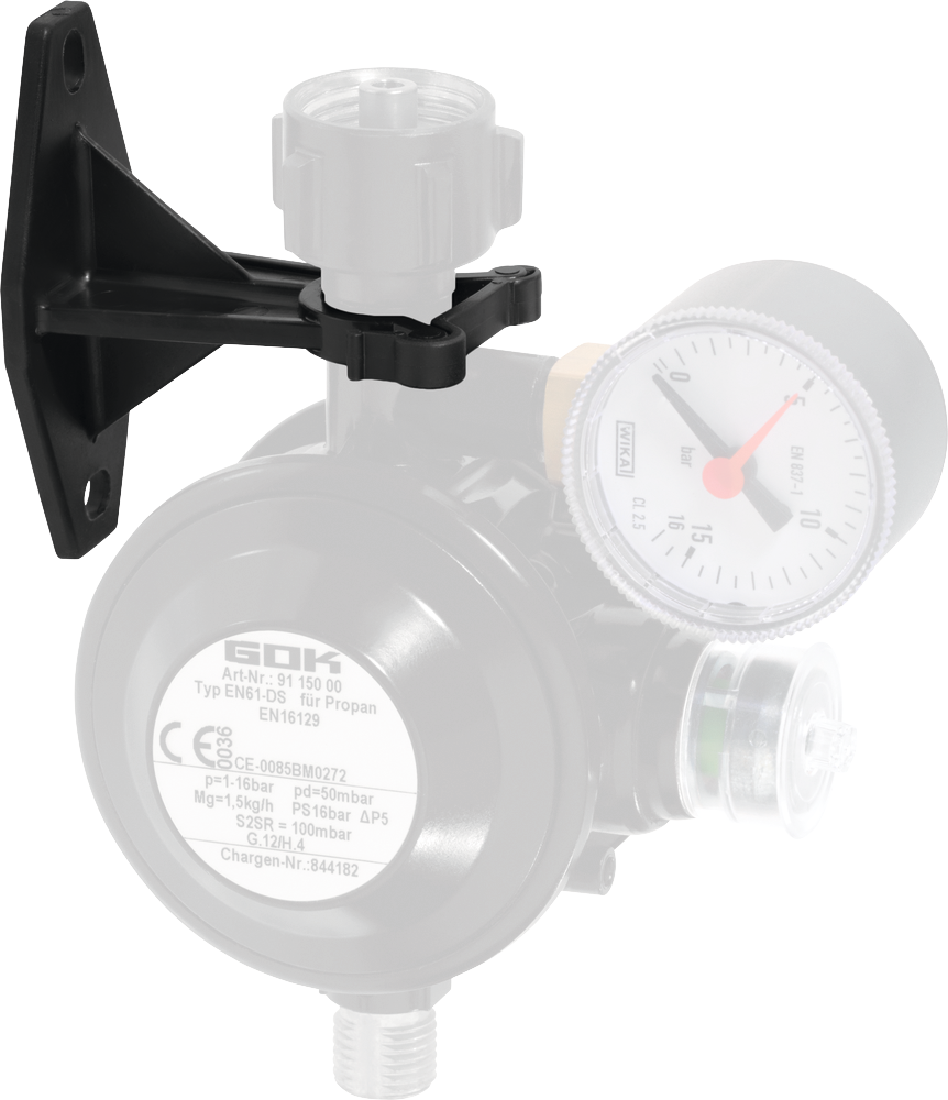 Zur sicheren Befestigung des Druckreglers am Gasgerät bzw. im Flaschenkasten um Beschädigungen des Druckreglers z. B. beim Transport zu vermeiden. egler L-Form.