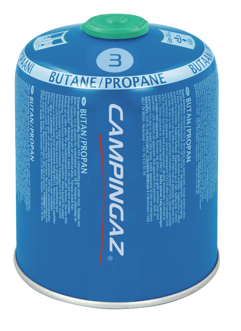 Ventilkartuschen Campingaz. Das Sicherheitsventil ermöglicht den Betrieb von Campingaz-Geräten mit dem traditionellen Campingaz-Schraubverschluss, dem Easy Clic®- und dem Easy Clic® Plus-Verschluss. Butan-/Propangasgemisch im Verhältnis 80/20.