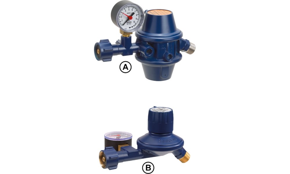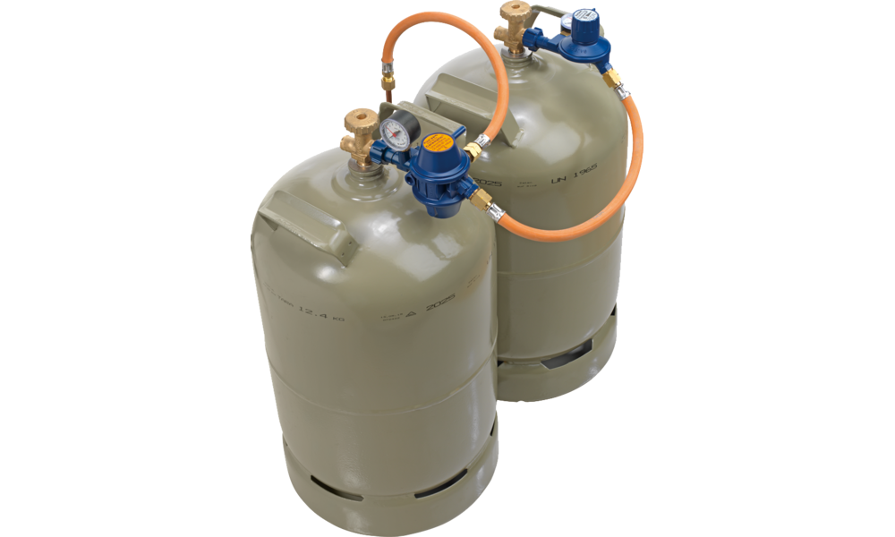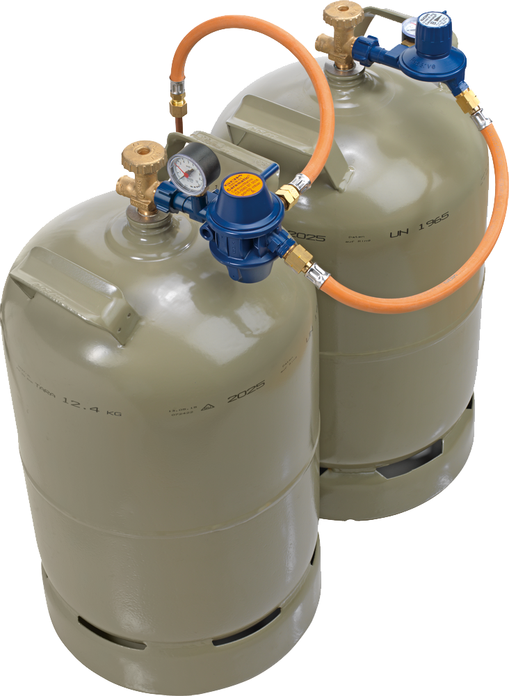 Regler-Umschaltautomatik, zum Anschluss an Gasflaschen, zur Druckregelung auf den Nenndruck des Gasgerätes.