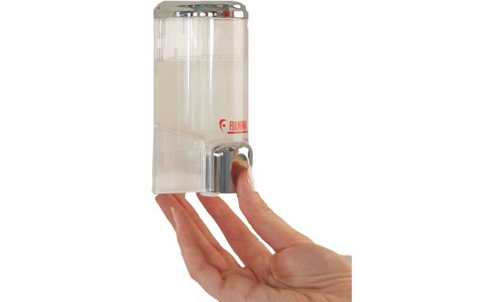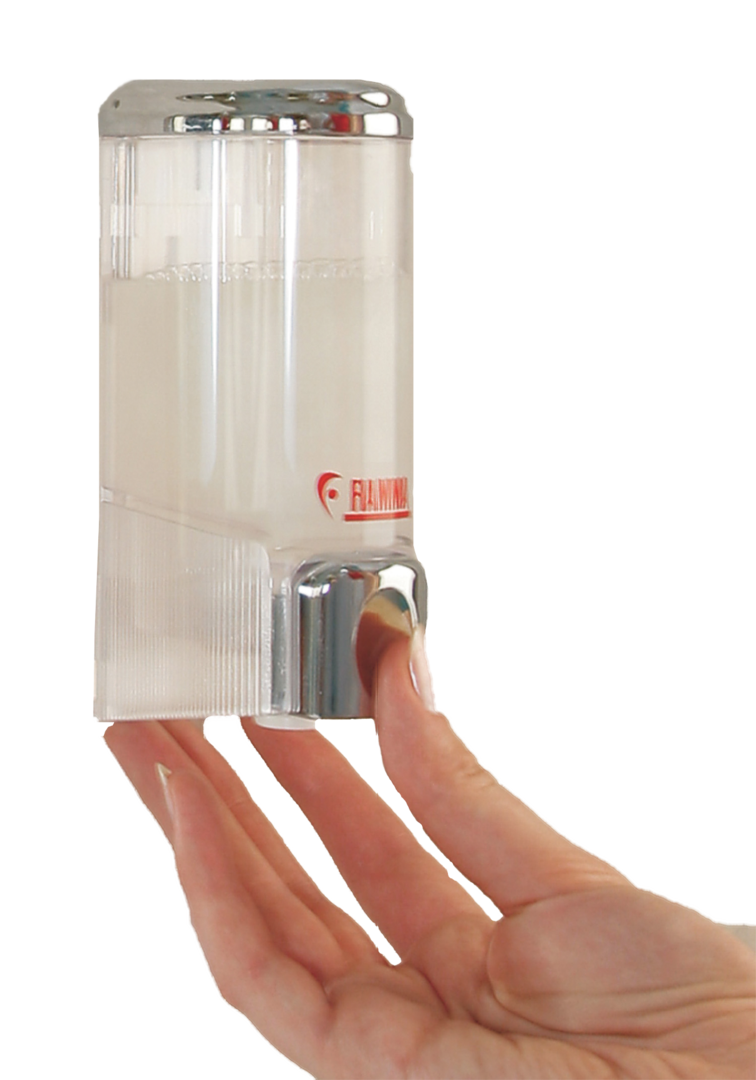 Dispenser. Formschöner Seifen- oder Shampoospender mit 0,2 l Inhalt (100 Dosierungen). Mit durchsichtigem Behälter.