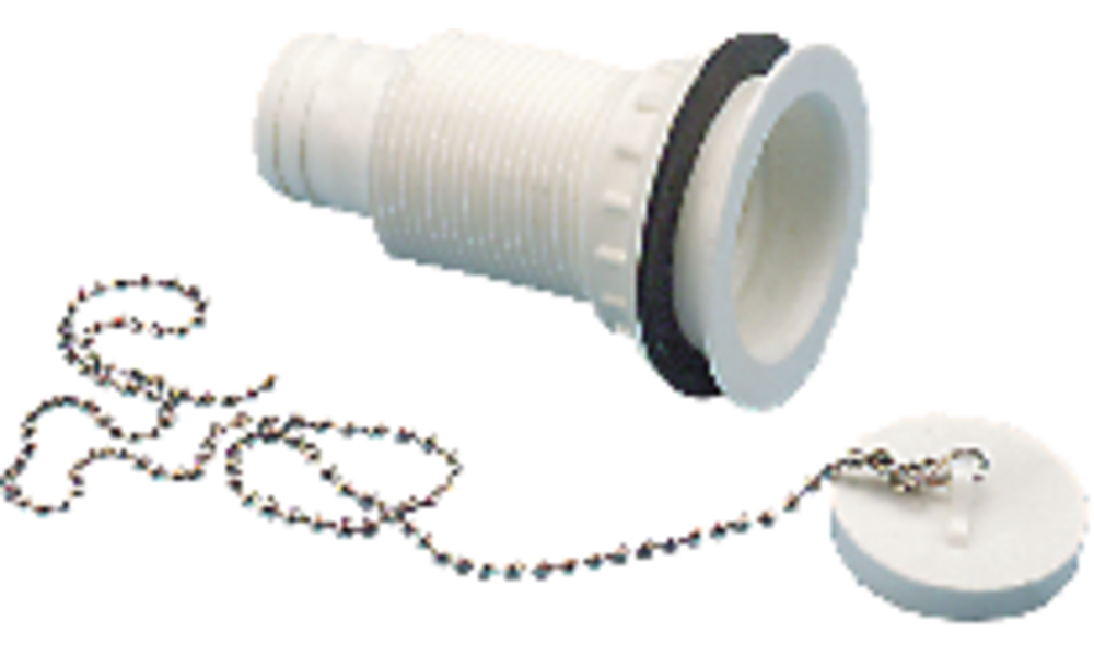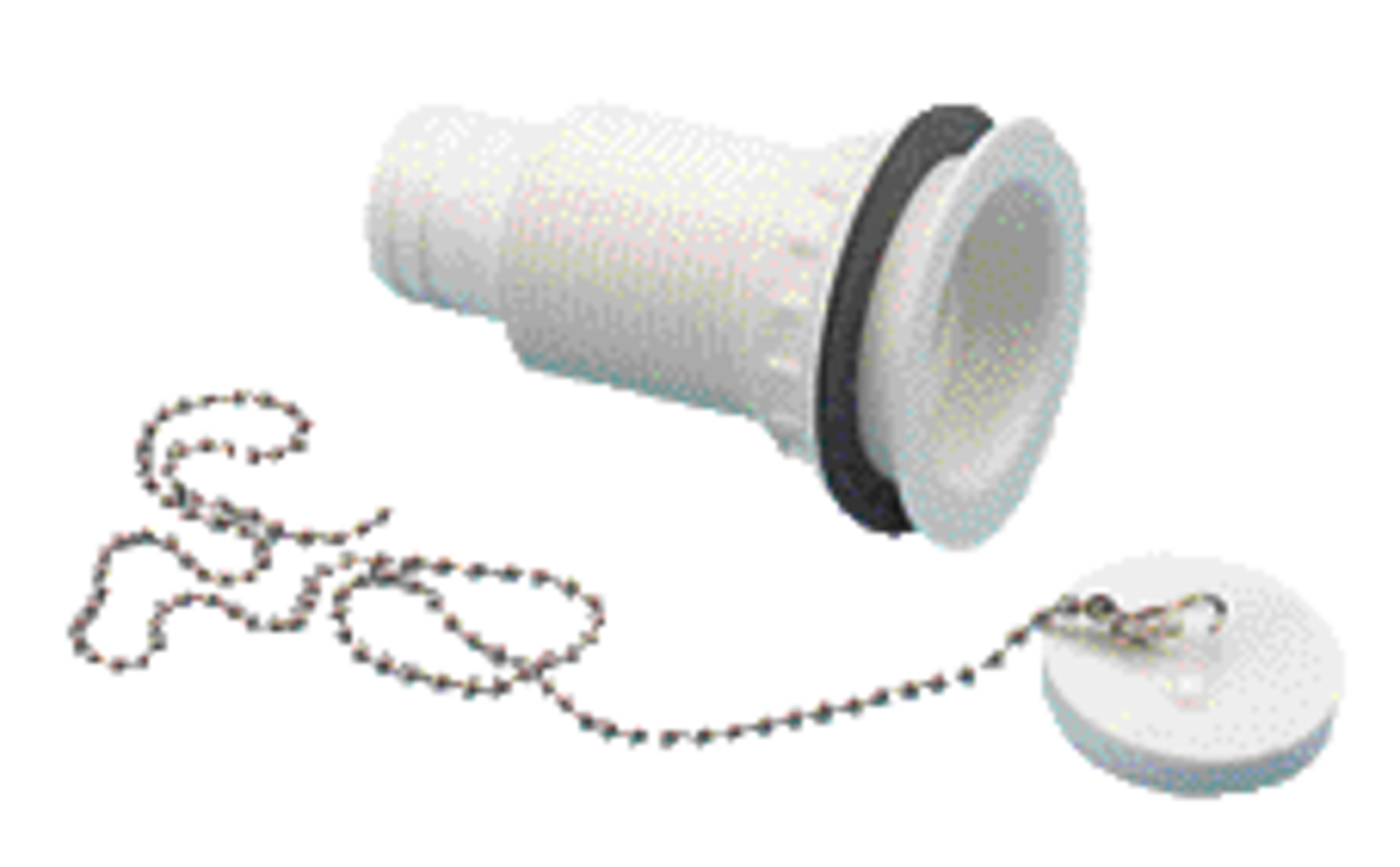 Duschwannen-Ablauf. Mit Stöpsel, Kette und Dichtung. Hergestellt aus weißem Kunststoff. Schlauchanschluss 30 mm ø. Passend für Ablauflöcher mit 45 - 50 mm ø.