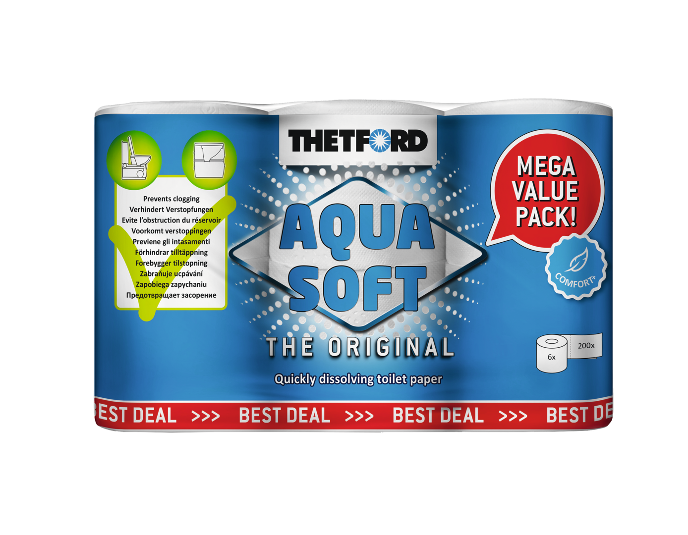Ein speziell entwickeltes superweiches Toilettenpapier, das sich schnell im Fäkalientank auflöst, um Verstopfungen zu verhindern und das Entleeren zu erleichtern.