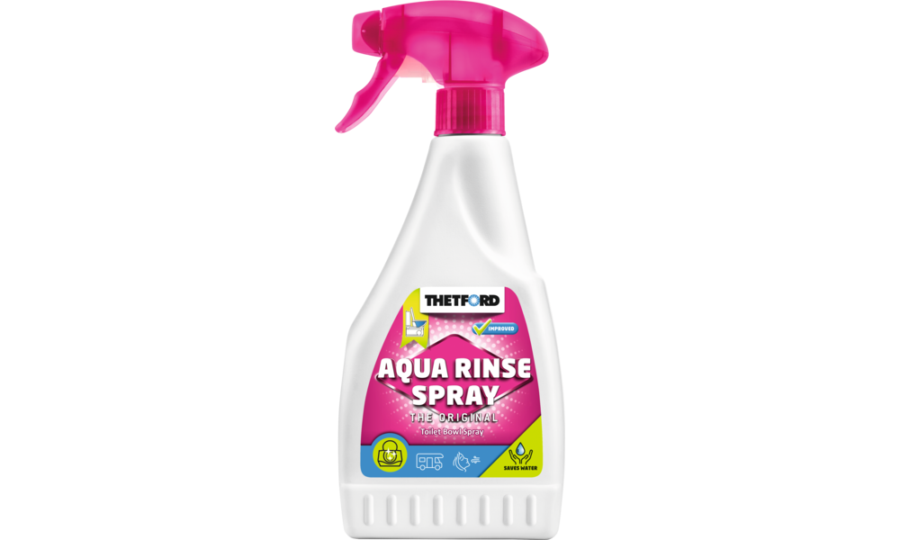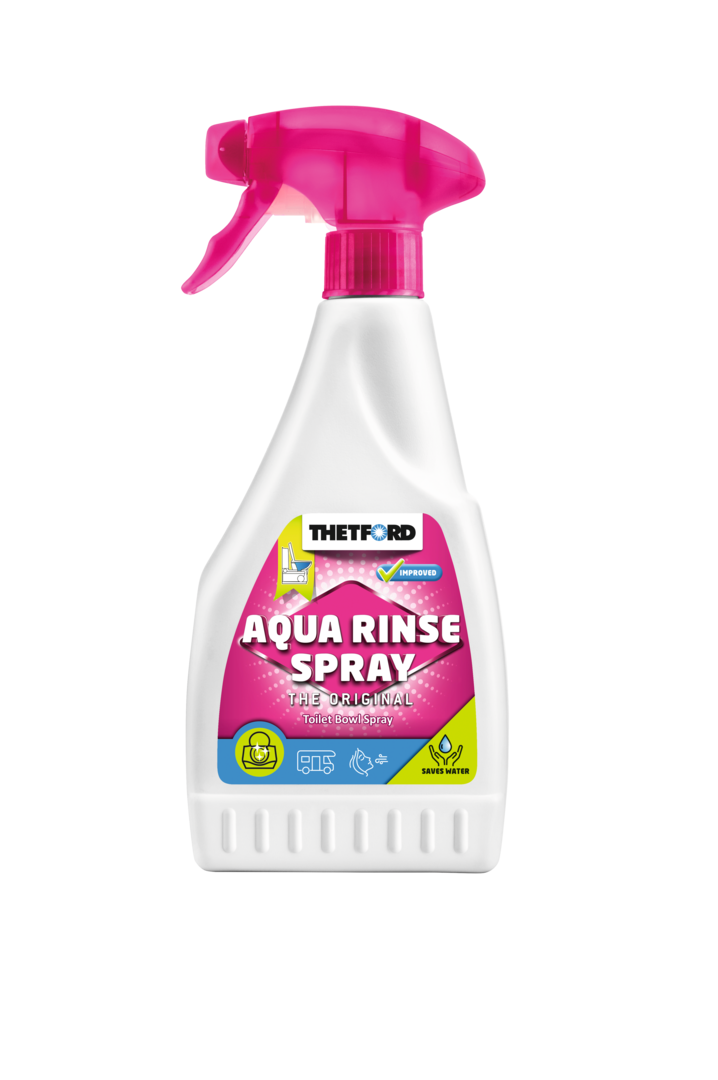 Toilettenschüsselspray, speziell für Toiletten, die Ihr Spülwasser aus dem zentralen Spülwassertank beziehen. Eine innovative Spüllösung mit allen Vorteilen von Thetford Aqua Rinse Plus.