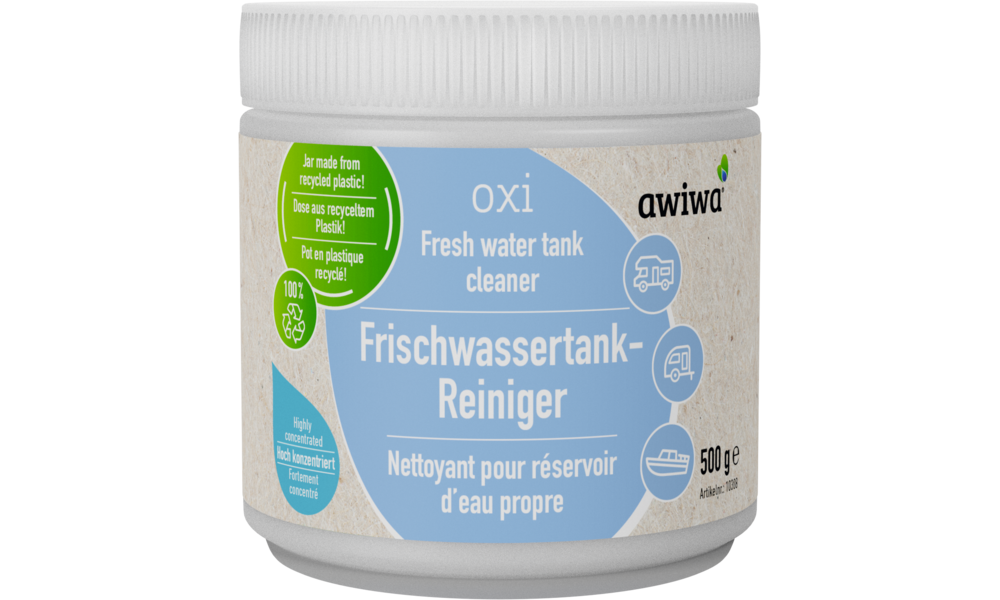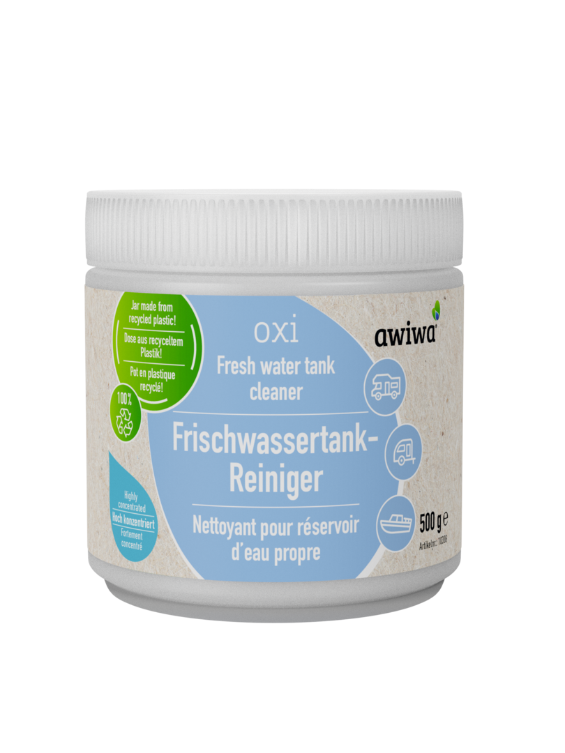 awiwa Frischwassertankreiniger auf Basis von Aktivsauerstoff und Mineralien ist geruchs- und geschmacksneutral, frei von Chlor und künstlichen Zusatzstoffen.