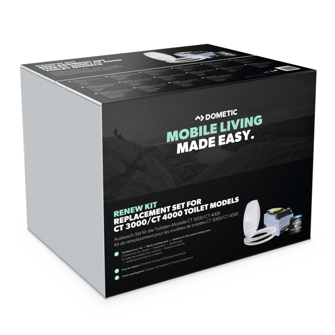 Das Dometic Renew Kit lässt ältere Toiletten in neuem Glanz erstrahlen. Alle wesentlichen Teile werden komplett ersetzt - eine einfache und kostengünstige Lösung. Passend für die Dometic Toilettenmodelle CT 3000/CT 4000, ideal für Gebrauchtfahrzeuge!