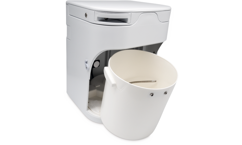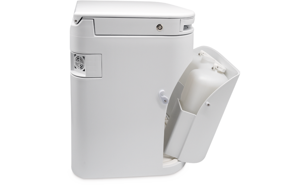 Die Urinflasche hat neun Liter Fassungsvermögen und ist noch leichter entnehmbar. Auch der Feststoffbehälter lässt sich nun einfach herausnehmen und ent-leeren.