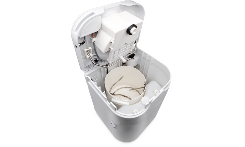 Feststoffe und Kokosfasern werden im Rührwerk auf Knopfdruck vermengt - natürlich geruchsfrei!