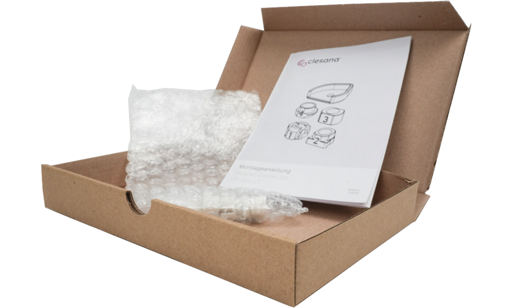 Mit Hilfe des Umbausatzes kann der Standard Soft-Close Deckel Ihrer Clesana C1 ganz einfach zu einem Deckel mit Magnetscharnier umgerüstet werden. Das erlaubt gerade in engen Einbauräumen