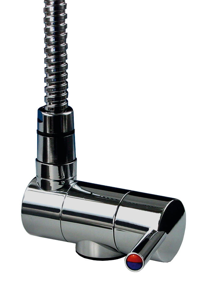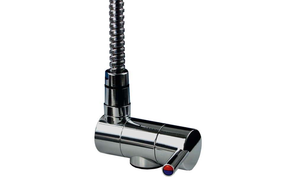 Auch zur Wandmontage bestens geeignet. Max. Druck 3 bar. Anschluss: Schlauchtüllen (rot/blau). Duschanschluss ½".