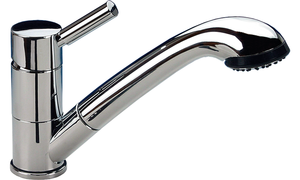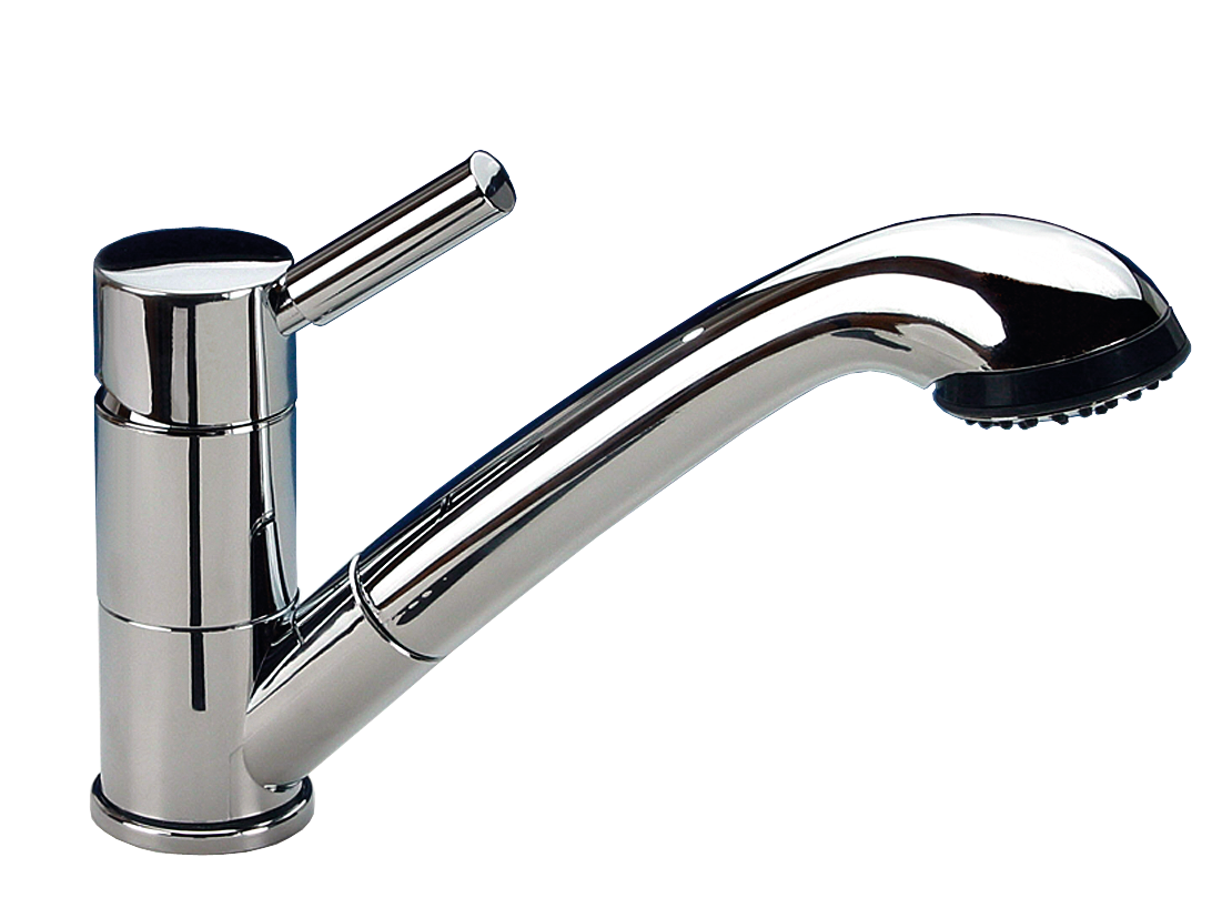 Einhebelmischer TREND-E mit Brause. Hochwertige, verchromte Armatur mit Keramikkartusche und wasserdichtem Schalter (IP67) im modernen Design. Mit herausziehbarer Brause und flexiblen Anschlüssen. Max. Druck 6 bar. Montagebohrung 36 mm ø.