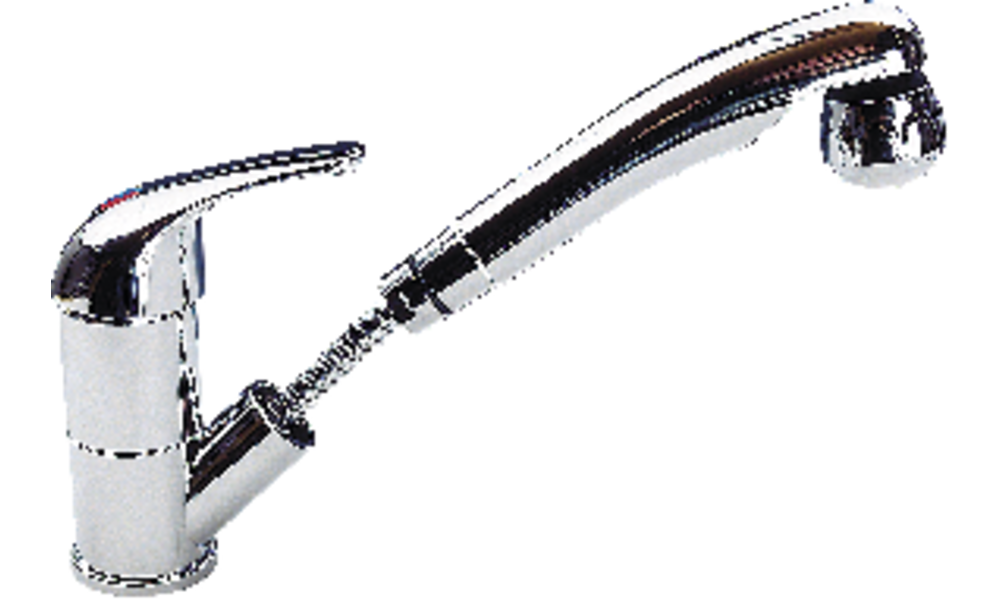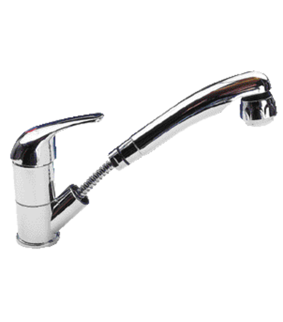 Einhebelmischer KAMA mit Brause. Mit herausziehbarer, 1,5 m langer Kombi-Brause. Einstellbar auf Strahl oder Dusche. Schwenkbar um ca. 90°. Mit flexiblen Anschlüssen für Schläuche mit 10-12 mm ø. Montagebohrung 36 mm ø. Farbe Chrom.