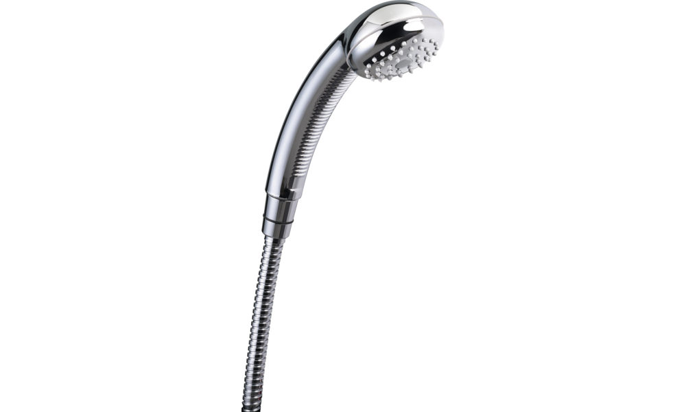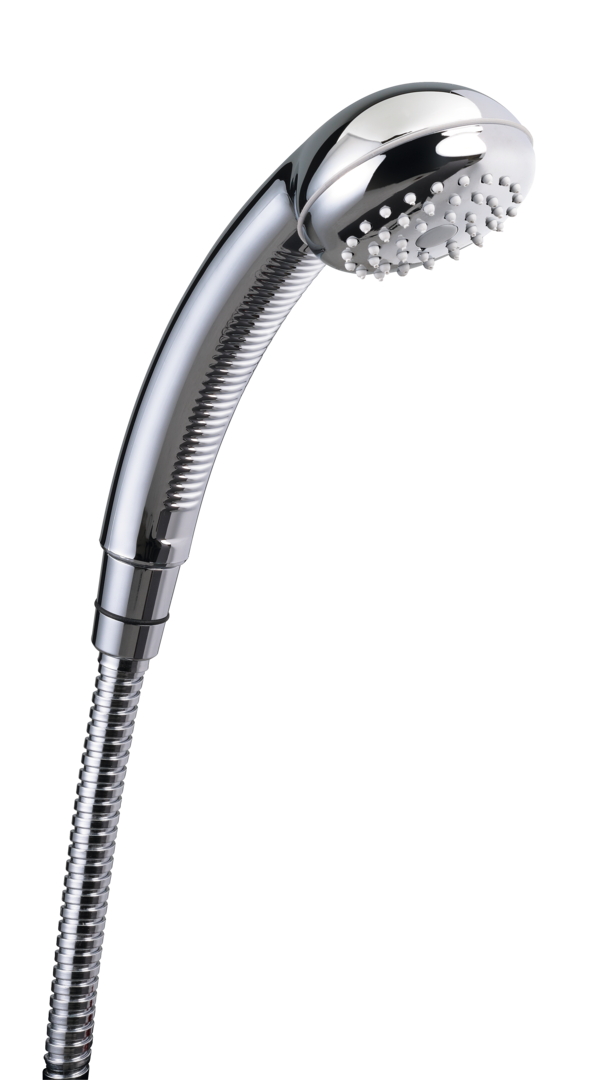 Handbrause ORION. Anschluss ½". Mit eingebautem Strahlregler aus weichem Kunststoff, besonders leicht von Kalk zu befreien. Ohne Brauseschlauch. Farbe Chrom.
