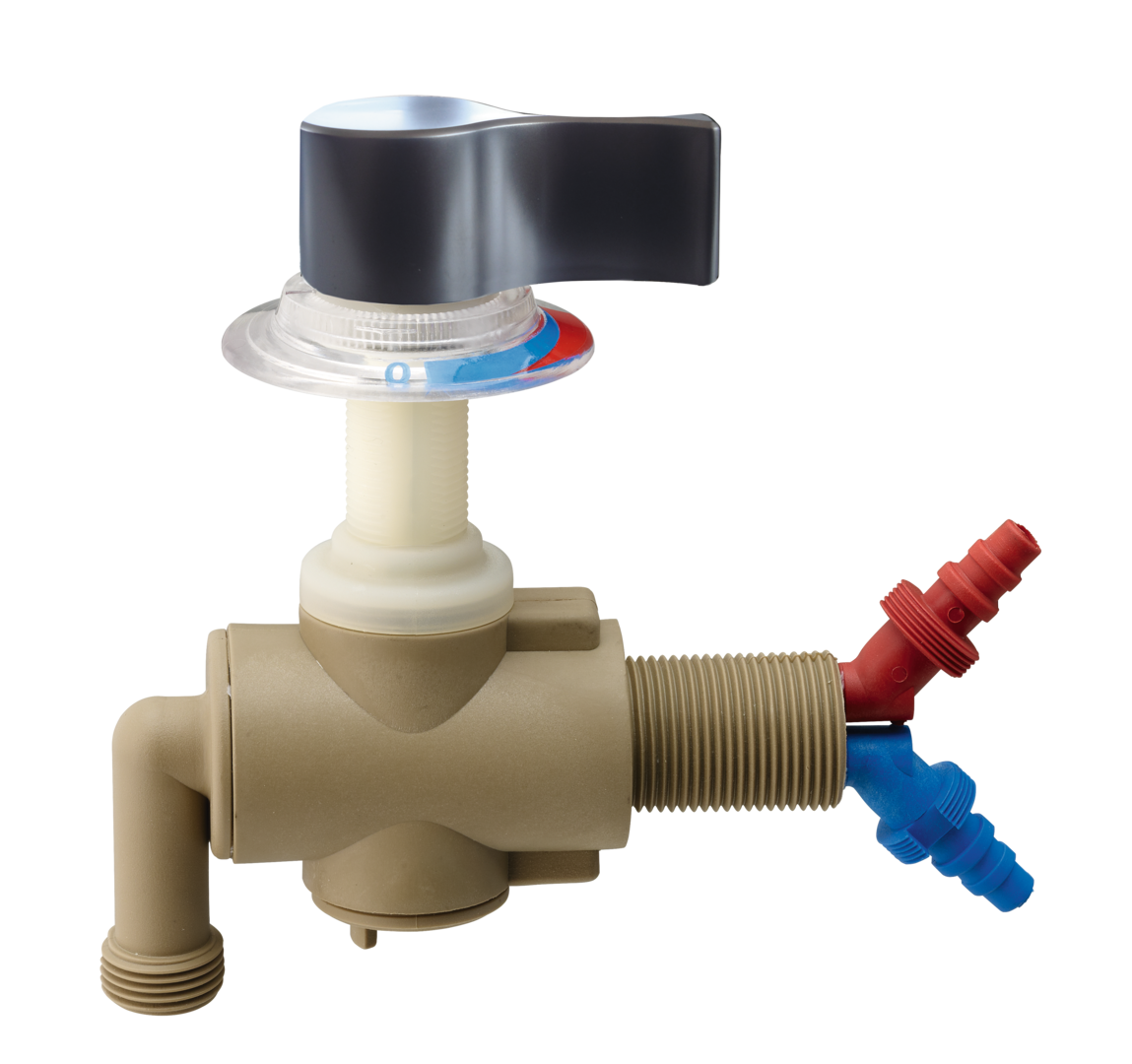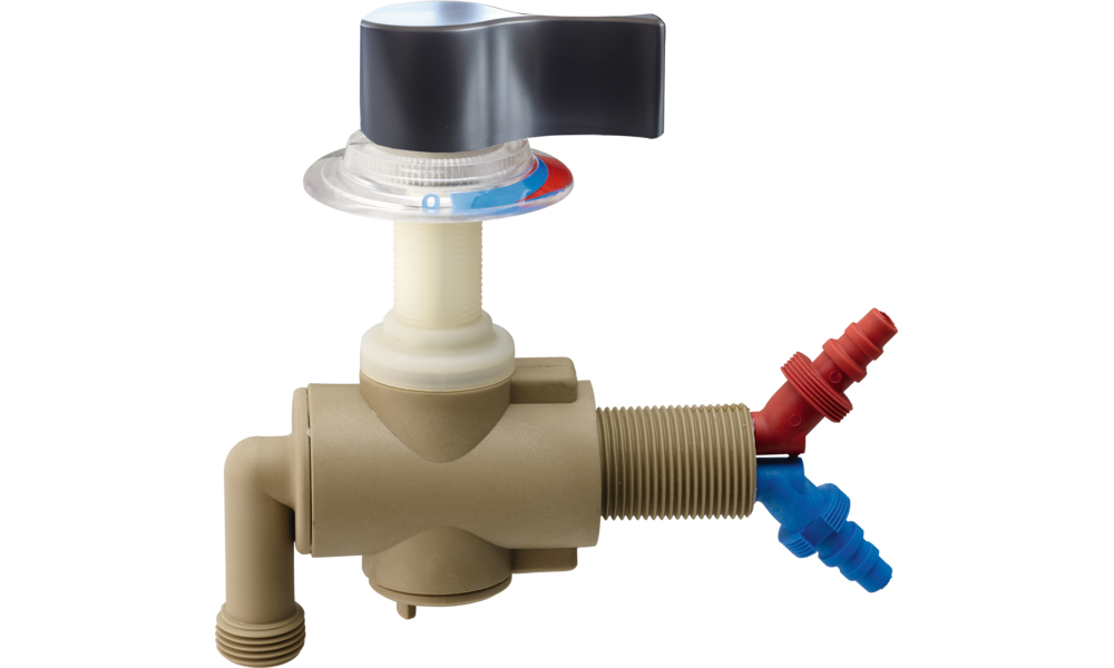 Untertisch-Mischbatterie mit EIN-KNOPF-Bedienung.