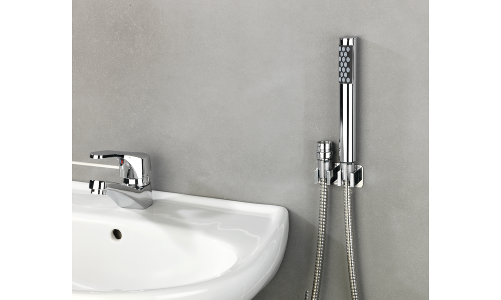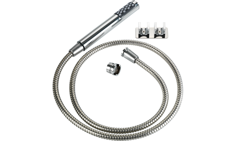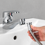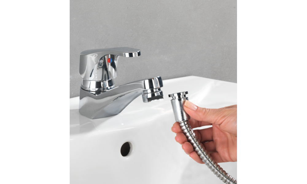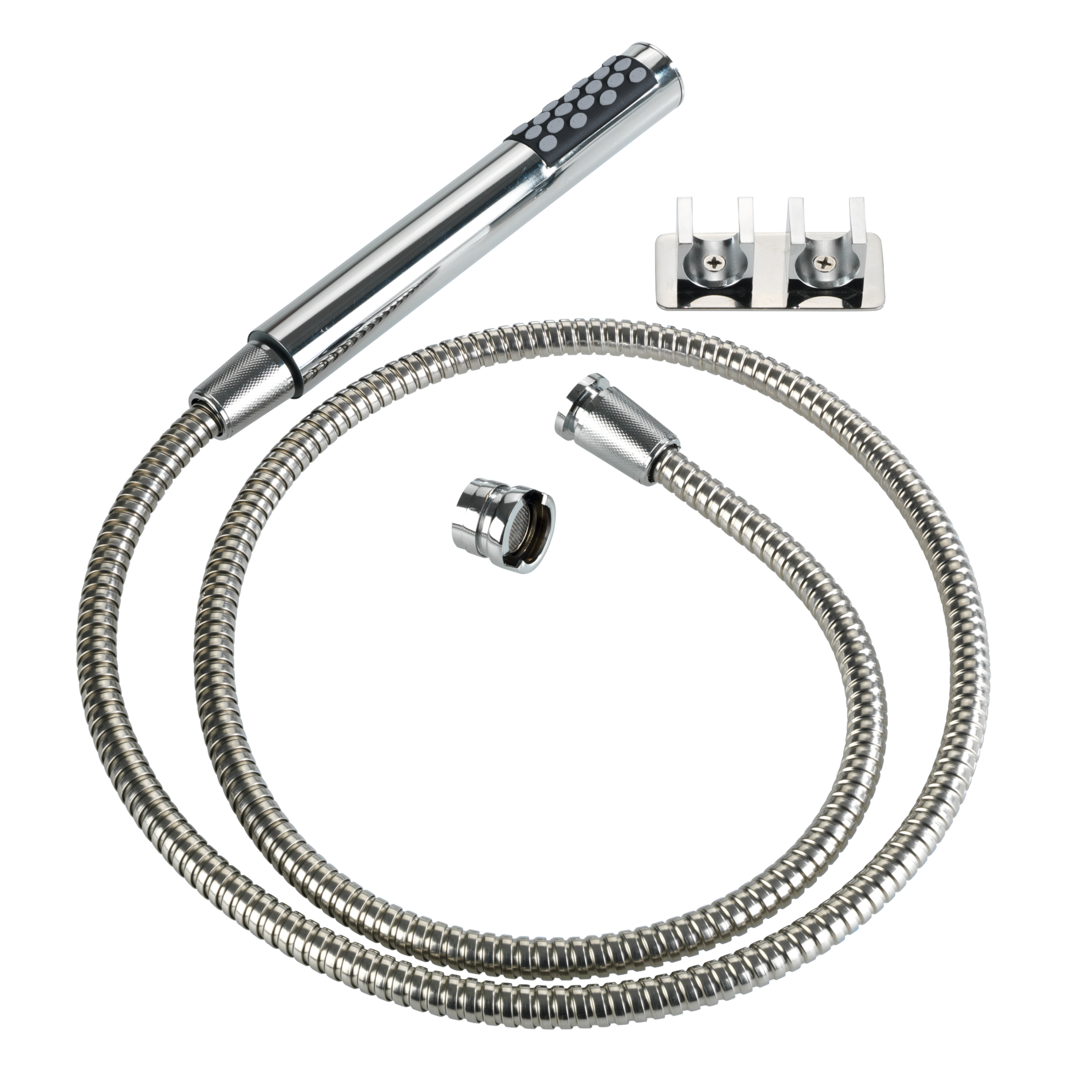 Waschbeckendusche mit Duo-Haken. Einfache Montage und Demontage dank innovativem Easy-Clip Schnellverschluss. Extra langer, knickfester Edelstahl-Schlauch (150 cm) für komfortables Spülen der Haare. Brausekopf im neuen handlichen Design. Mit pflegeleichten Anti-Kalk-Noppen. Inklusive DUO Haken samt hochwertigem 3M-Klebepad zur praktischen Wandaufbewahrung.