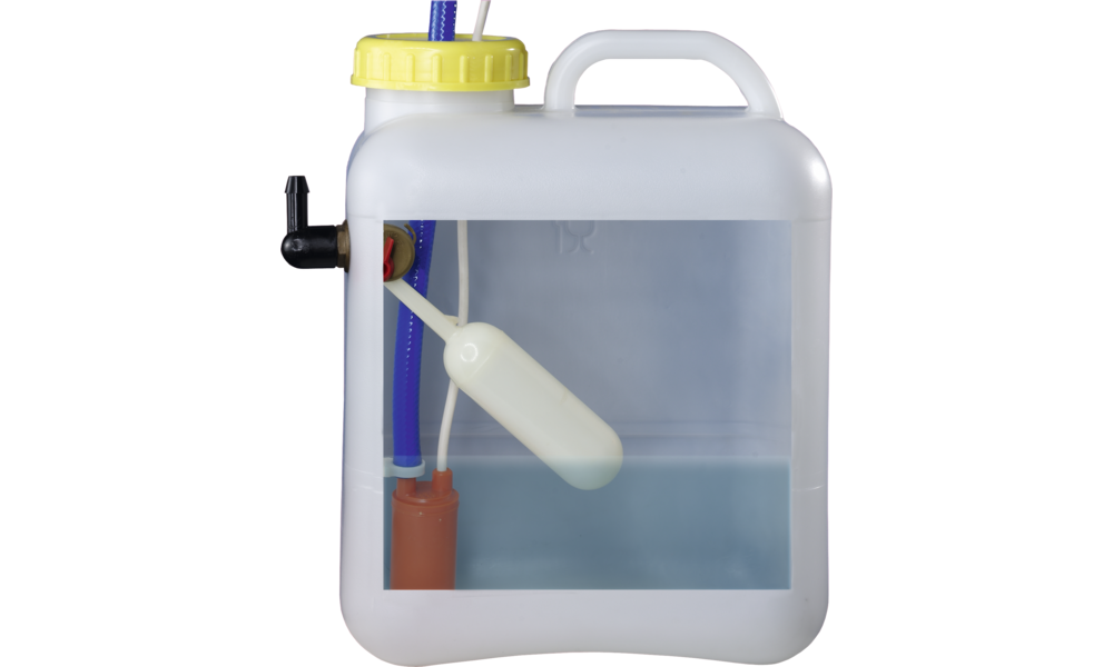 Wasserzufuhr vom Wassernetz ab, sobald das maximale Wasserniveau erreicht ist, bei sinkendem Wasserspiegel öffnet das Ventil selbstständig. Wasserentnahme ist mit jeder Tauchpumpe möglich. Lieferung ohne Kanister.