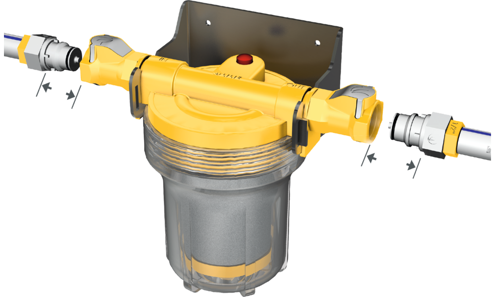 Certec® Inline Komplett-Set. Komplett-Set bestehend aus: Gehäuse, Halterung, Kartusche 6in1, 2 x LILIE-Pushand-Connect Ventiladapter und Schnellkupplung, Karton und Anleitung.