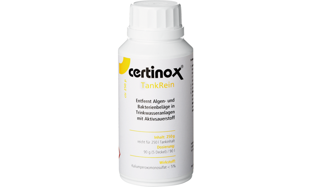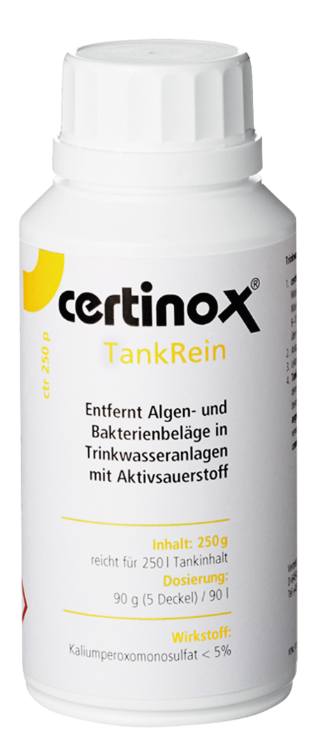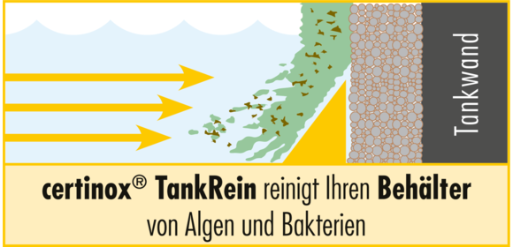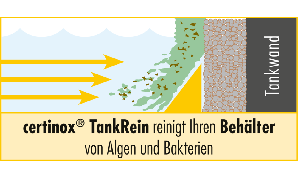 Algen und Bakterienbeläge in Tank und Leitungen werden mit Aktivsauerstoff entfernt.