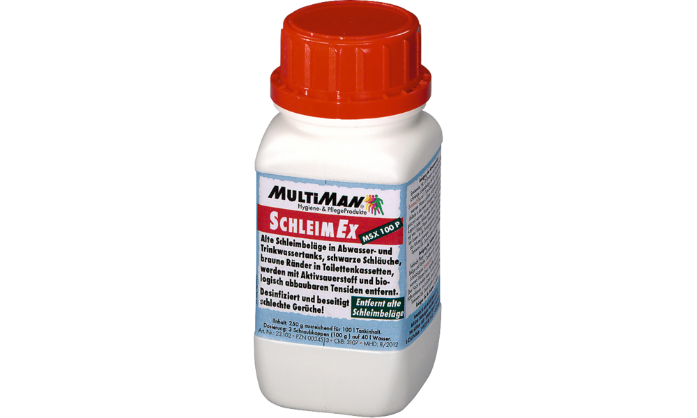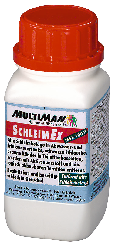 Beseitigt mit Aktivsauerstoff und biologisch abbaubarem Fettlöser alte braune und schwarze Schleim-, und Schmutzablagerungen in Trink- und Abwassersystemen.