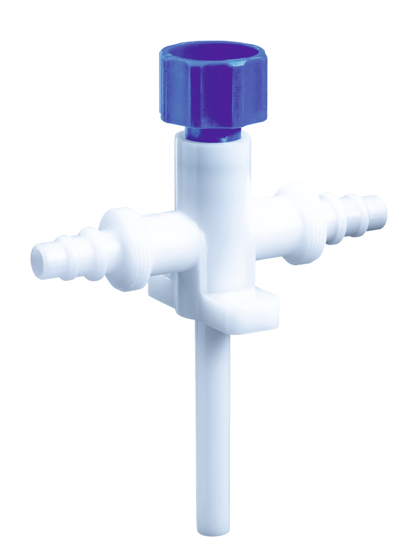 UniQuick-Ablassventil. Aus Kunststoff für Frischwasserverteiler. Mit 2 Eingängen und Schraubanschluss.